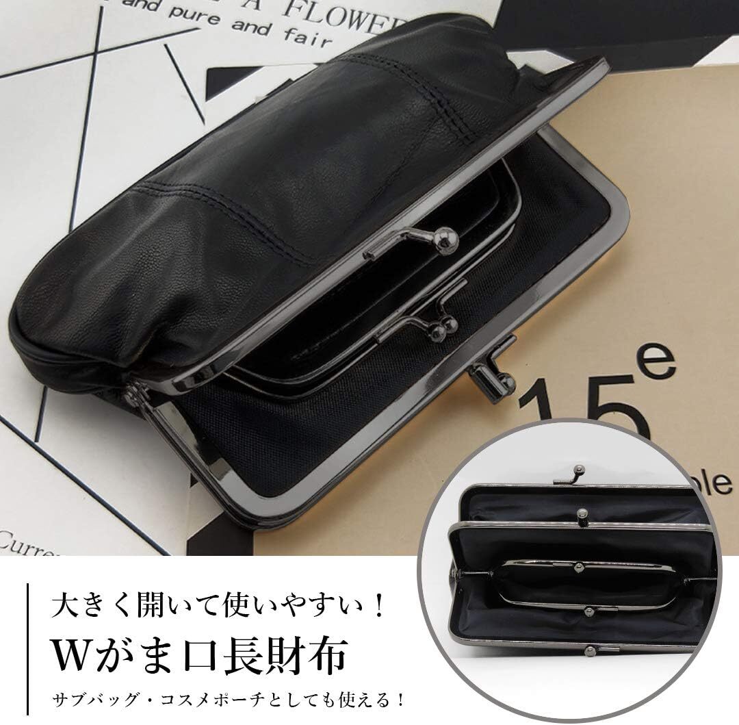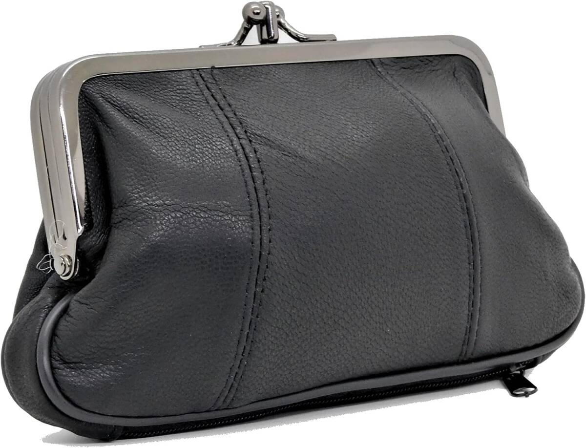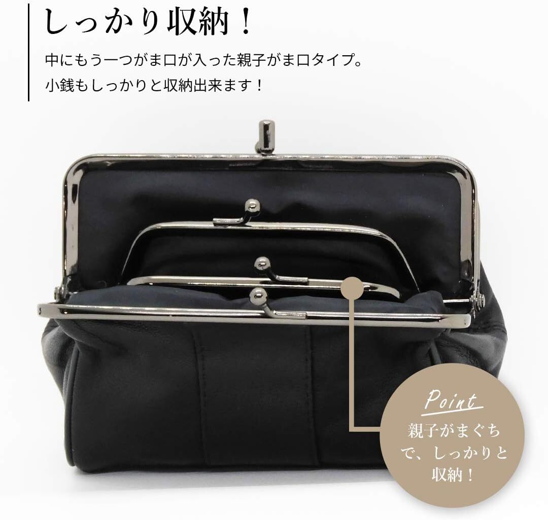 がま口財布 本革 レディース 親子 大人おしゃれ ポーチ プチプラ ブラック 黒 收藏