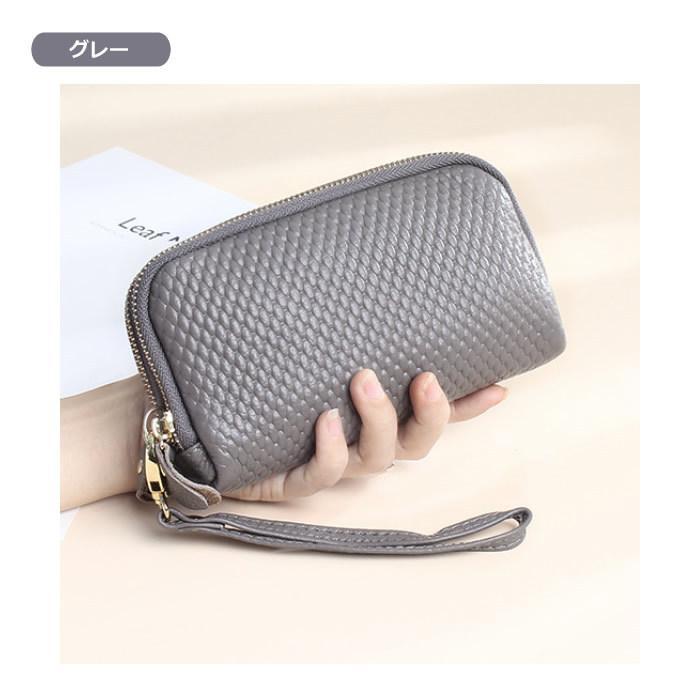 爆買 本革 ポーチ 化粧ポーチ マルチポーチ ダブルファスナー レザー 新春セール 2025 ハロウィン ショルダー(グレー) 收藏