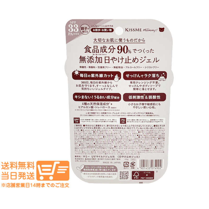 伊勢半 キスミーマミー UVマイルドジェル N 100g SPF33 PA+++ kissme mommy 日焼け止め 收藏