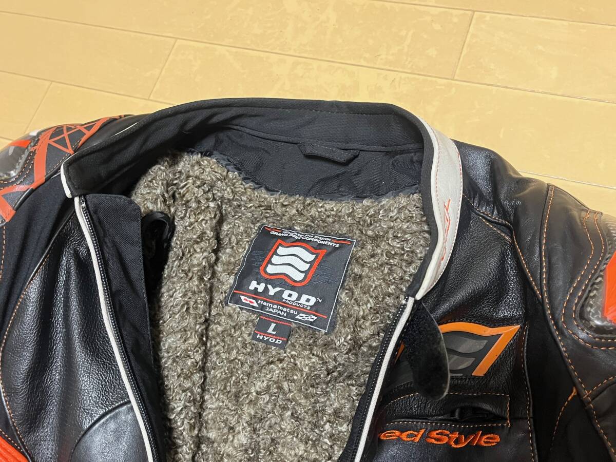 HYOD ヒョウドウ D3O レザージャケット ネックガード付き Lサイズ HYODレザージャケット/レザーパンツハンガー付き 收藏