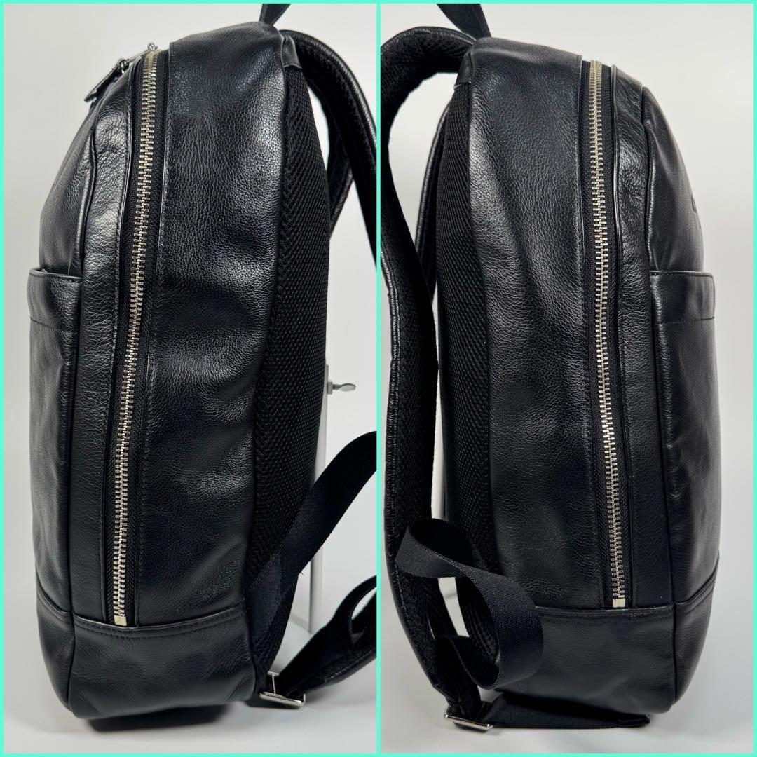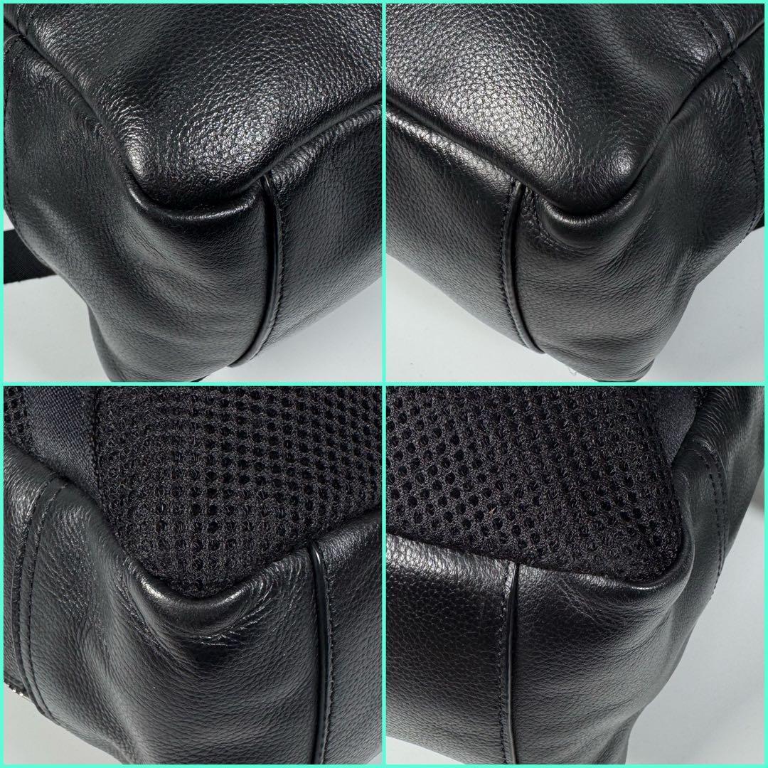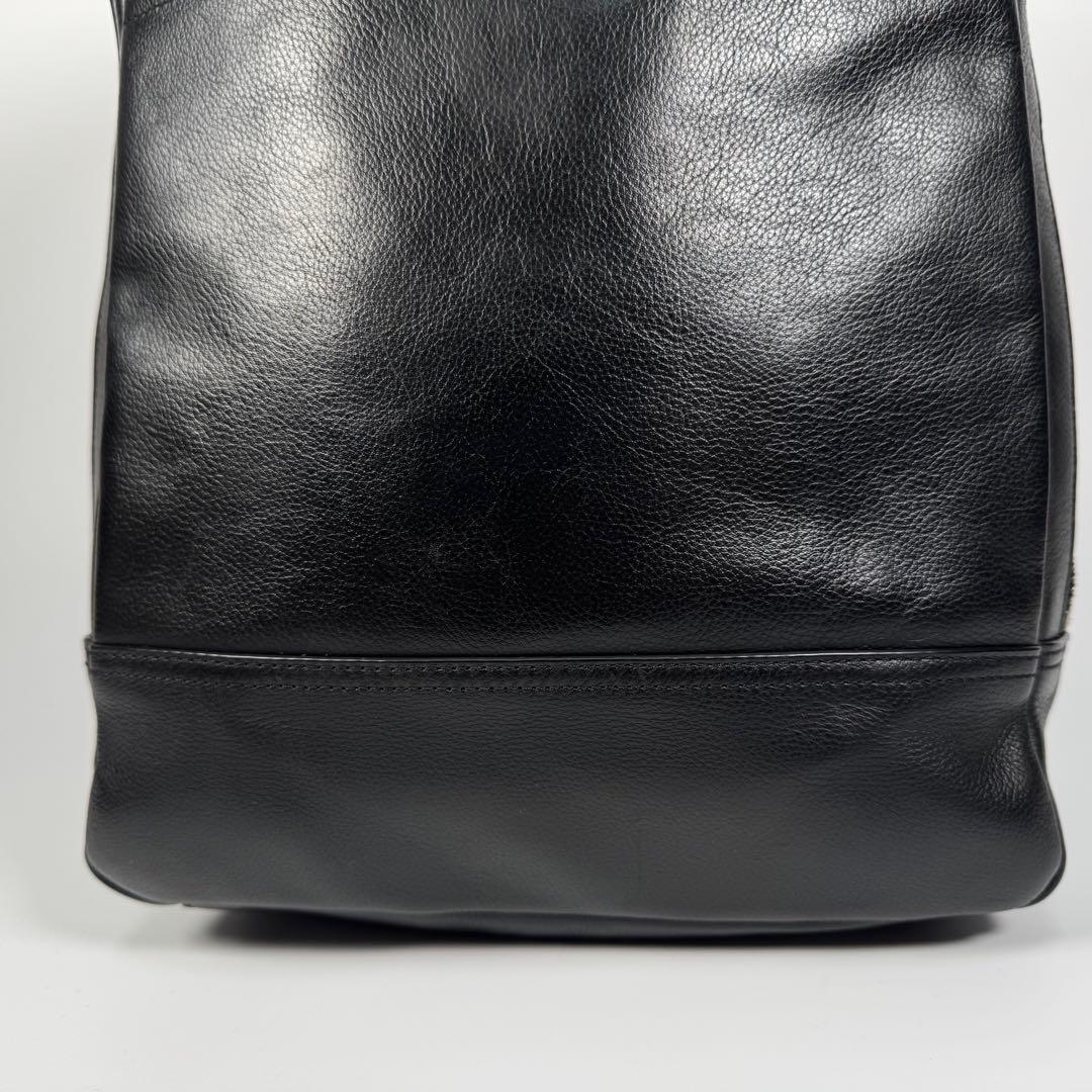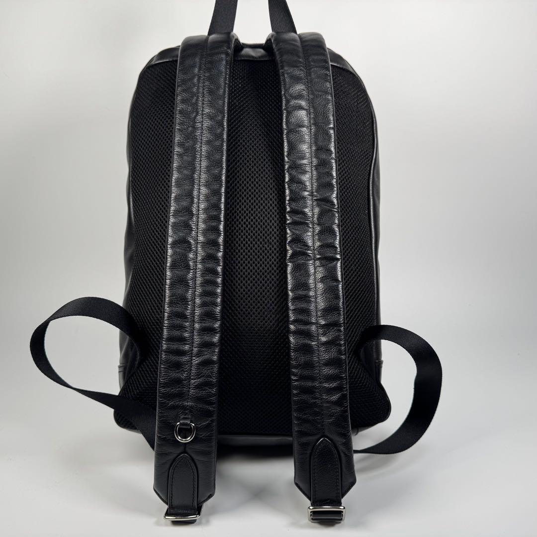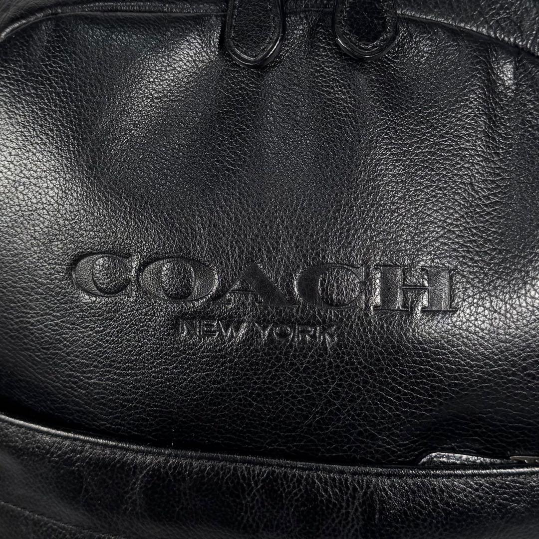 美品 COACH コーチ レザー リュック ロゴ 型押し ブラック 黒 バッグパック メンズ 本革 シュリンクレザー ビジネス カジュアル 收藏