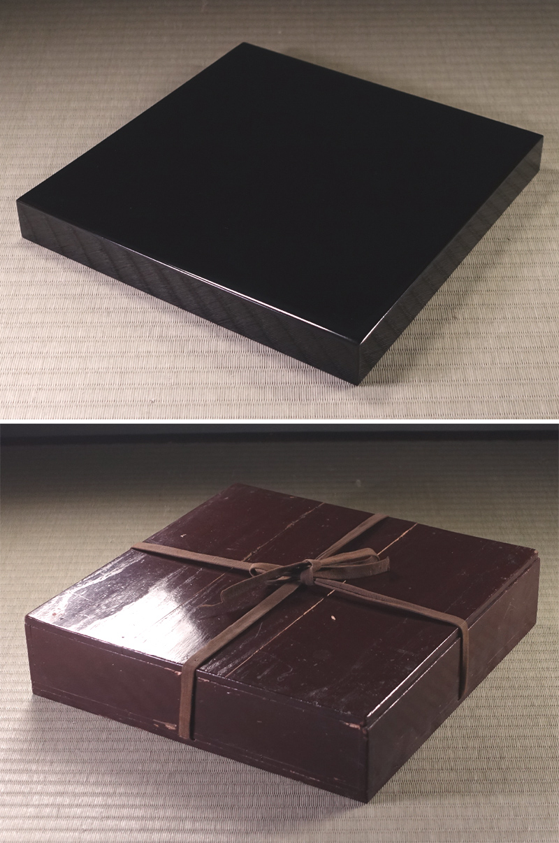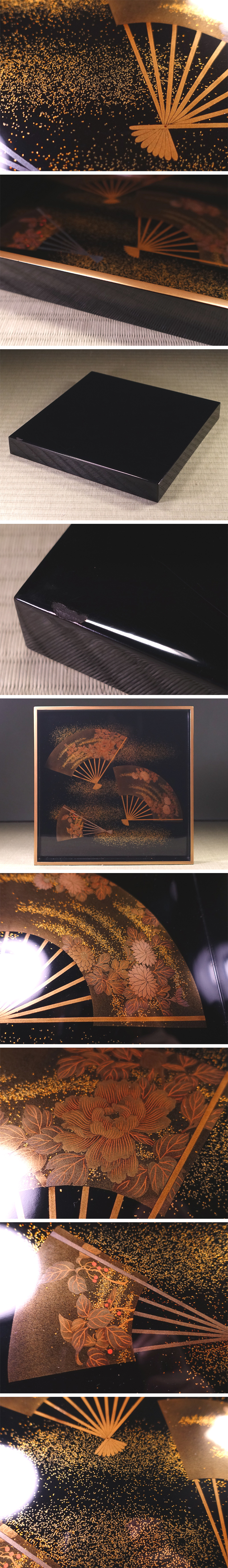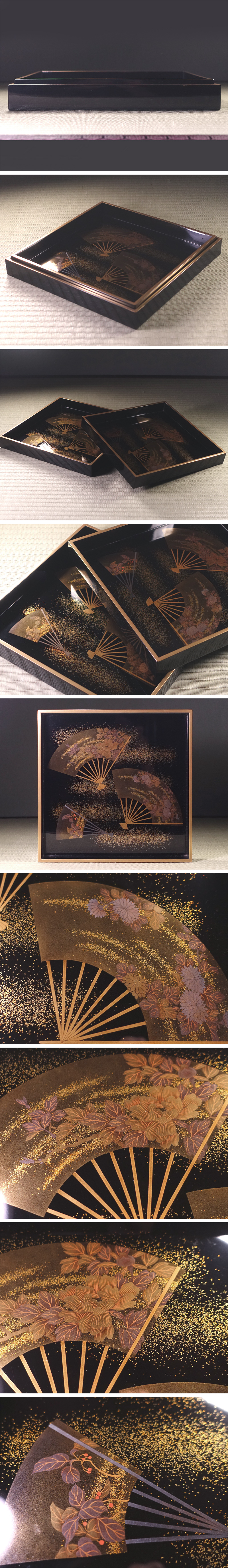 ∇花∇明治~大正時代 牡丹菊花扇面散蒔絵入子盆 廣蓋 四方盆一対 高雅な時代漆器 收藏