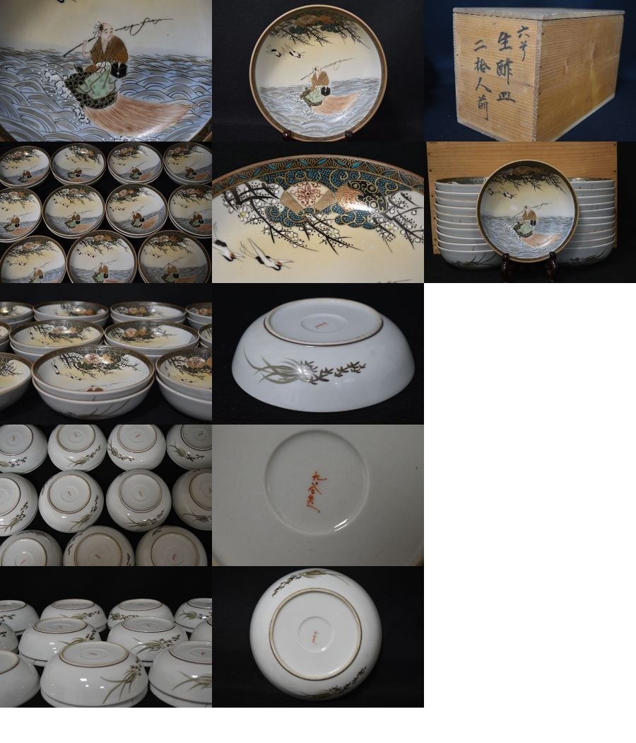 【光成】九谷焼「金彩色絵・浦島太郎・縁起皿21客」全無傷・2客甘手