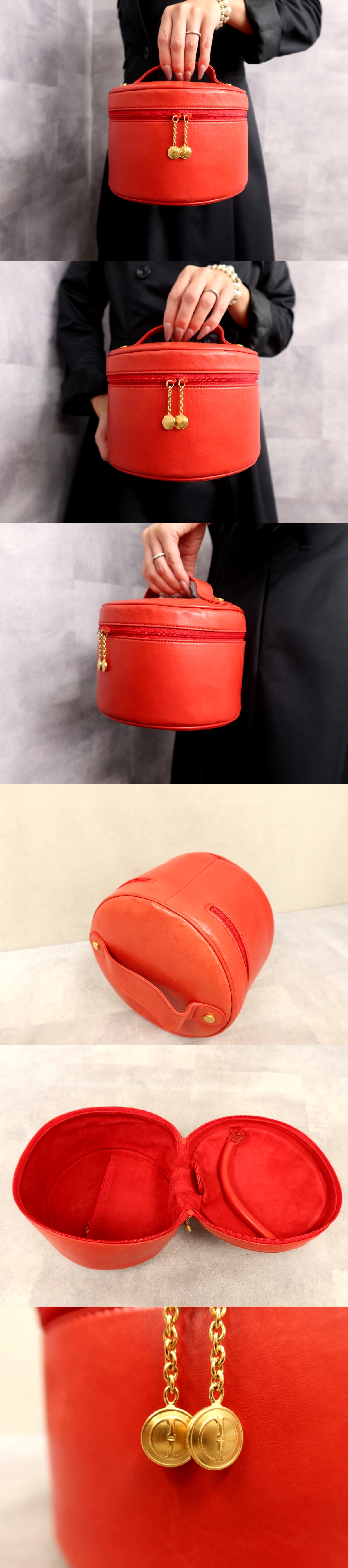 ●超美品●GUCCI グッチ●ナッパ レザー 本革●ハンド バニティ バッグ●コーラルレッド●ゴールド金具●イタリア製●収納 かばん●Js62419 收藏