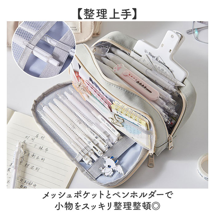 | 商品説明 | ・・【たっぷり入る】 ・多機能&大容量で文具をひとまとめ!シンプルデザインのペンケース。 ・【たっぷり入る2ルーム】 ・ペンや消しゴムなど必要な文房具をひとまとめ♪ ・【整理上手】 ・メッシュポケットとペンホルダーで小物をスッキリ整理整頓◎ ・【便利な外ポケット】 ・外側のポケットにも収納可能で使い勝手抜群! ・【丈夫なキャンバス生地】 ・しっかりとした生地感で長く愛用できるつくり。 ・【ポーチとしても活躍】 ・ペンケースはもちろん、メイク道具などを入れるポーチとしても使える。 |