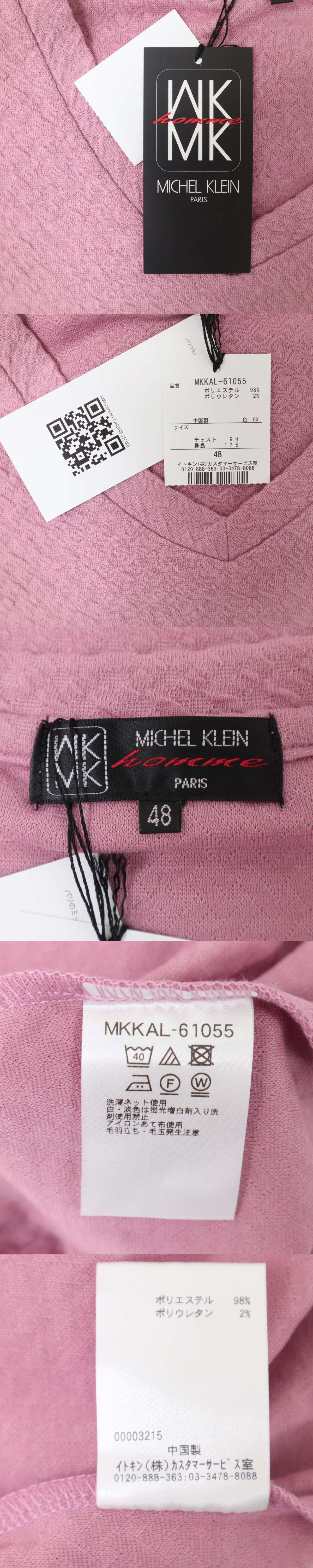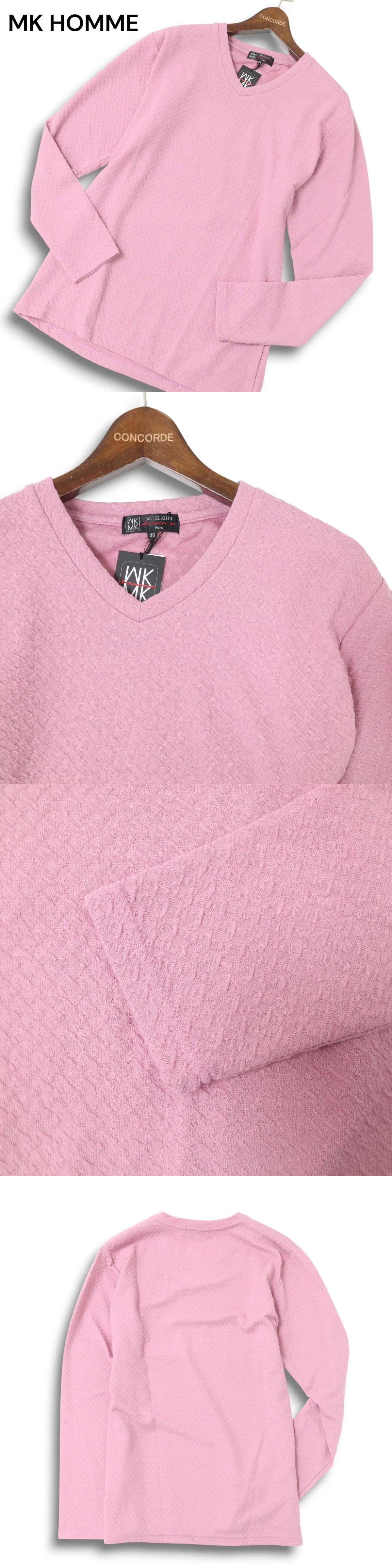 【新品 未使用】 MK HOMME ミッシェルクラン オム 通年★ ジャガード 長袖 Vネック カットソー Tシャツ Sz.48 メンズ 收藏