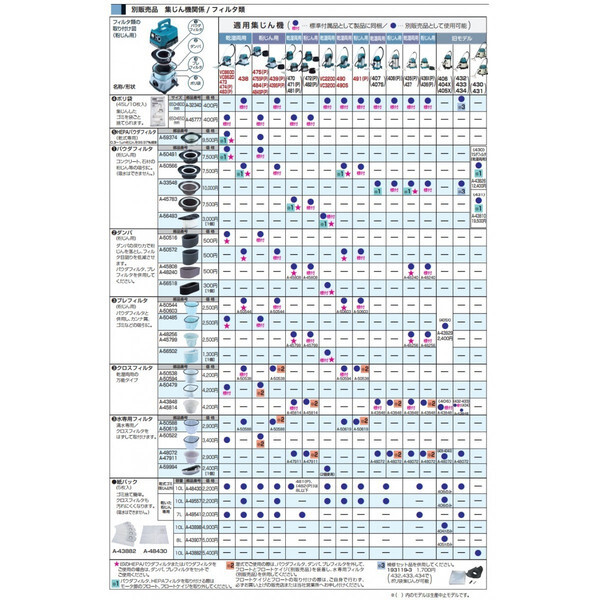 マキタ makita集じん機関係/フィルタ類紙パック(5枚入り)ゴミ捨て簡単。クロスフィルタも汚れにくくなります。(吸水はできません)適用集じん機438439(P)439SP(P)VC2200VC3200490490S491(P)407407S408(P)406