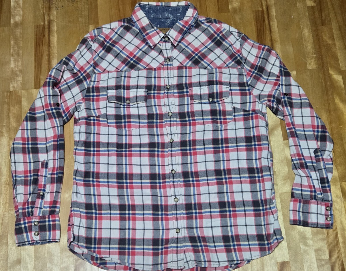 JACHS GIRLFRIEND 長袖シャツ チェックシャツ ホワイト レッド ブルー チェック Mサイズ USA古着 アメカジ ウエスタン 收藏