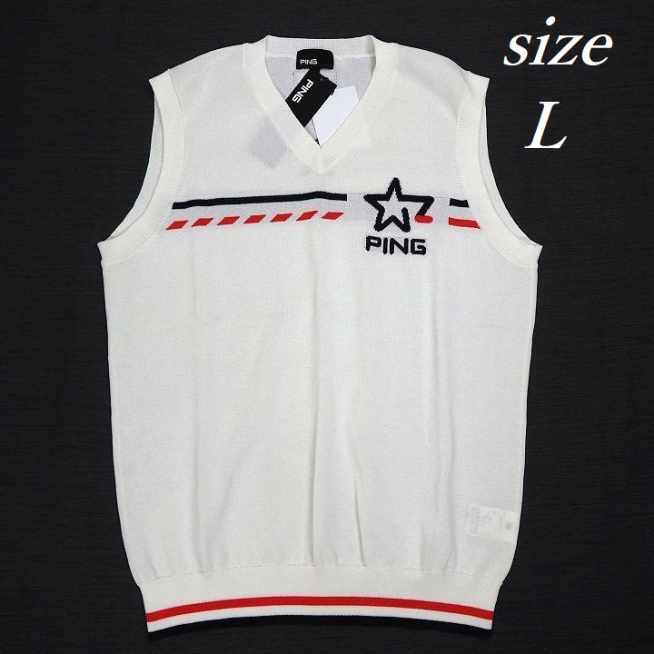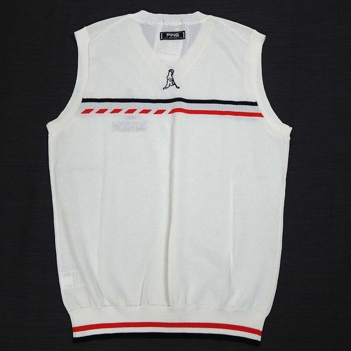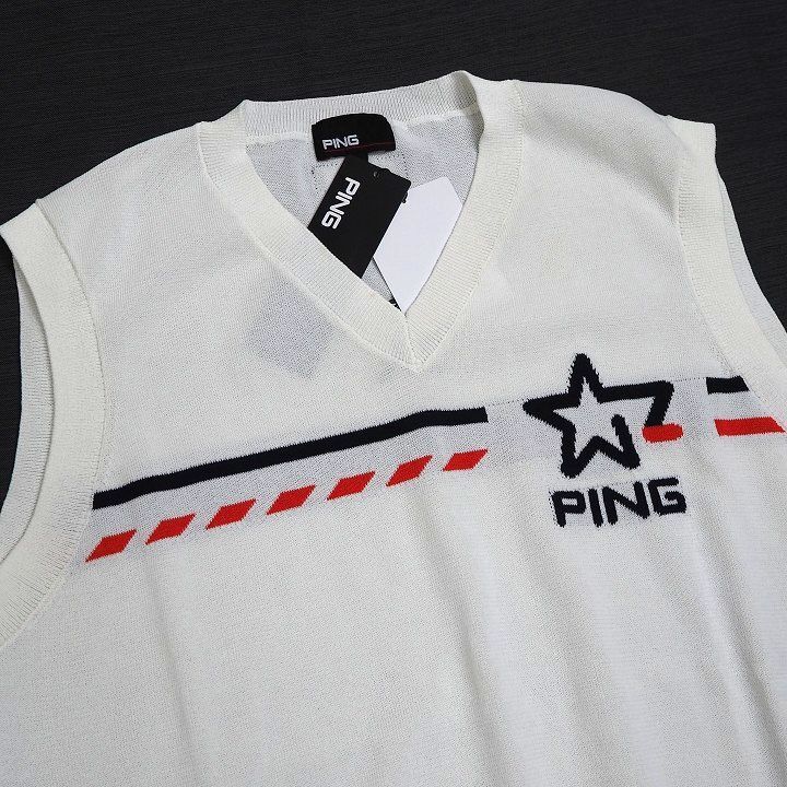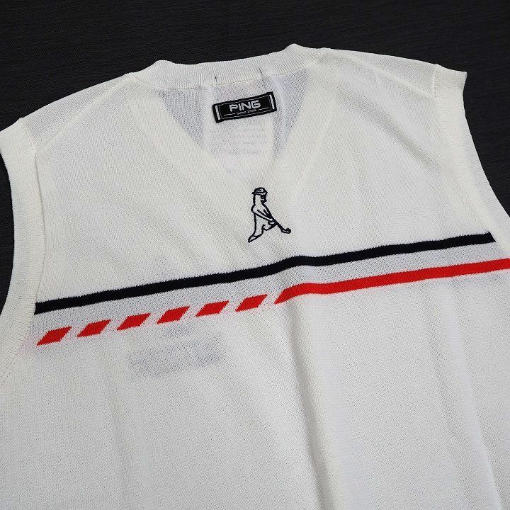 T180 新品 PING GOLF ピン ゴルフ 春夏 ジャガード Vネック ニット ベスト ゴルフウエア ホワイト L 收藏
