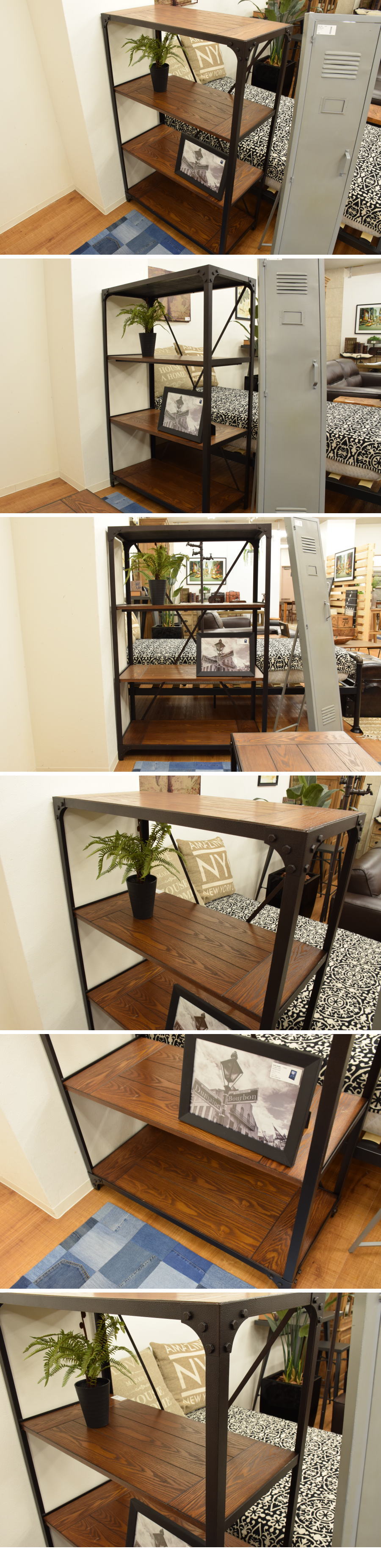 | ◆ 商品名 | 天然木アッシュ材×スチール■ハンマートーン仕上げ■4段シェルフ |
