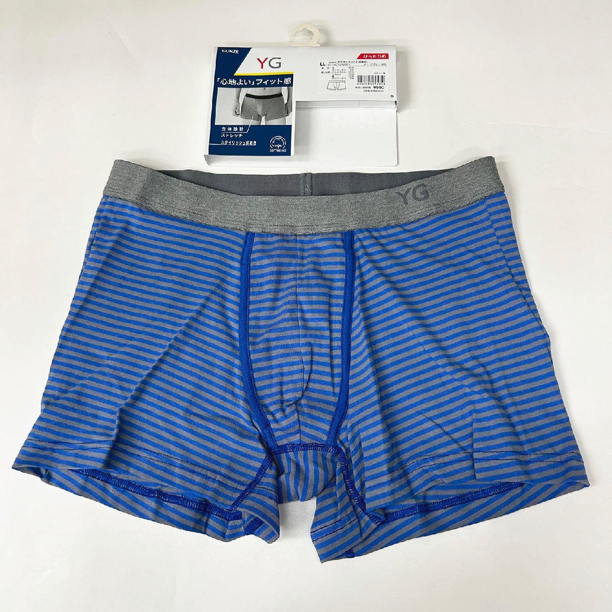 LL ★グンゼYG ボクサーパンツ ブルー×グレーボーダー 收藏