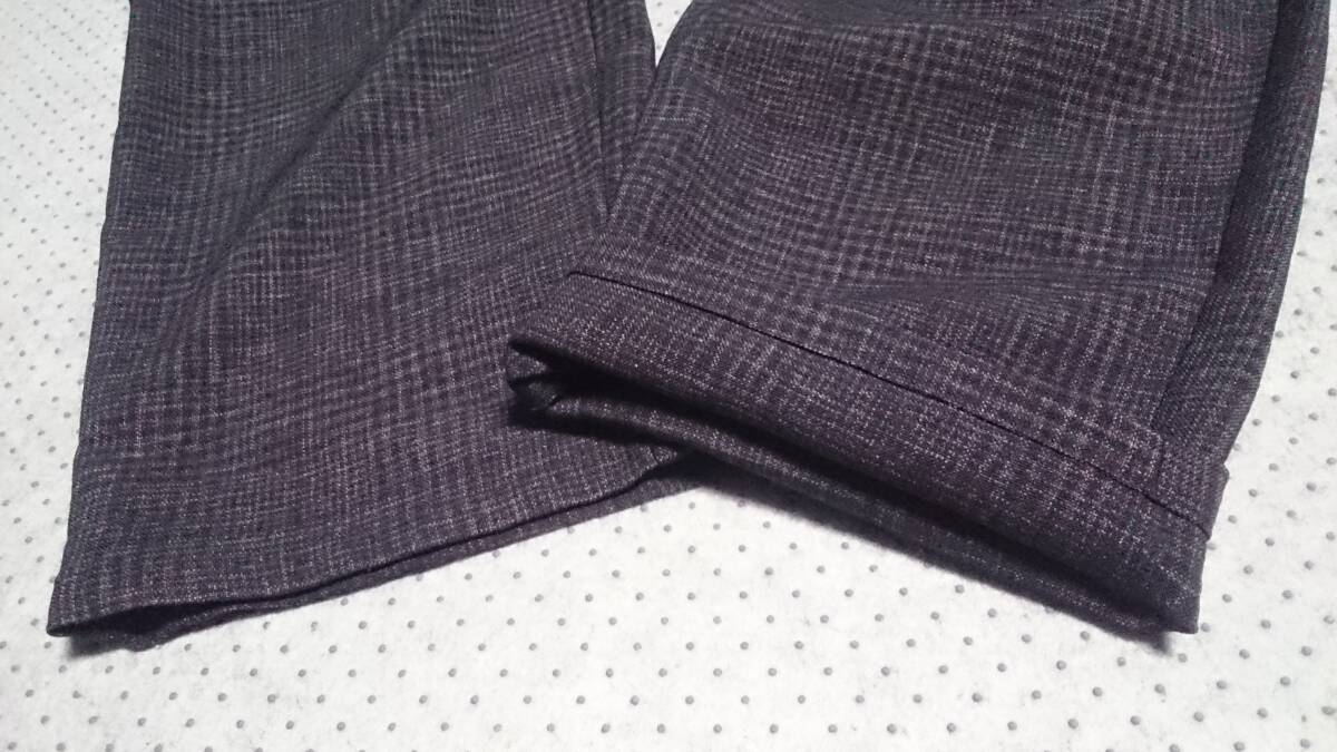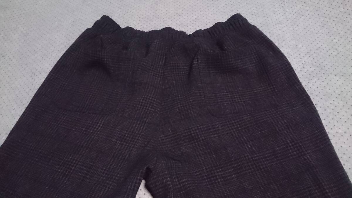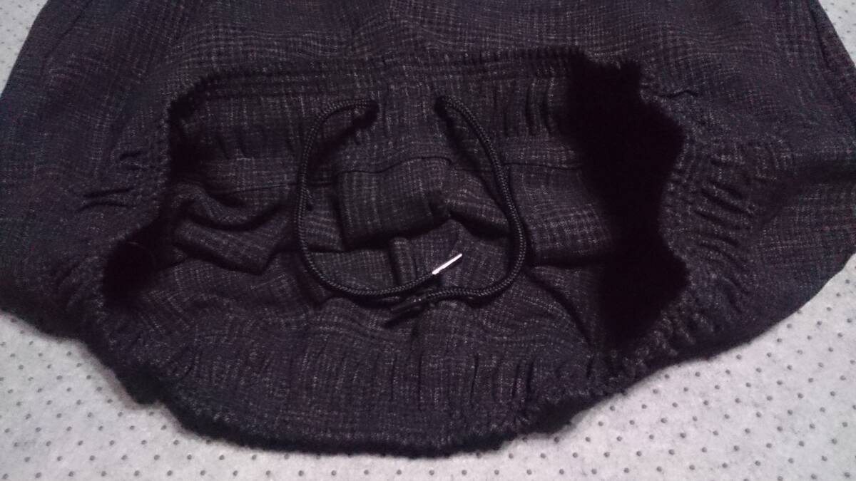 大き目サイズ 未使用級 nano universe ナノユニバース チェック柄 ストレッチ ポリエステル ビッグシルエット イージー パンツ 黒灰系 L 收藏