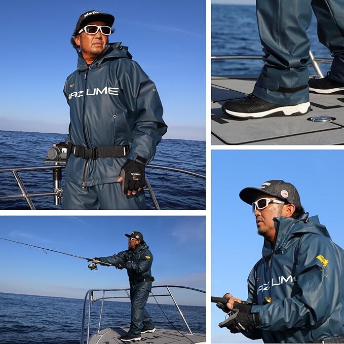| mazume MZRS-884 ROUGH WATER ラフウォーター レインスーツ ネイビーブルー 3L 新品を出品致します。 軽さと動きやすさ、そして高い防水性! mazume ROUGH WATERレインスーツは、オフショアで信頼される機能性を、釣り人のためのディテールで仕上げた一着です。 PU(ポリウレタン)素材の魅力 ・優れた防風・防水性能に加え、血や魚のヌメリもサッと落とせるメンテナンス性 ・軽く、しなやかで、キャストやシャクリなどの反復動作にもストレスなく追従 ・汚れたままでも、釣行後にホースで水をかけるだけでOKという手軽さ 釣りに特化して設計されたPU素材のレインスーツは、重たい塩ビ素材と比べて圧倒的に軽く、動きやすさが段違いです。 細身&スタイリッシュなシルエット 一般的な業務用レインウェアにありがちな野暮ったさはなく、インナーの着用を想定した細身の設計。 さらに、裏地にメッシュを採用しているため、汗や湿気によるベタつきも軽減されます。 ディテールへのこだわり ・袖口はネオプレーンの二重袖仕様で、風雨の侵入をしっかり防止 ・パンツは胸まで覆うサロペットタイプを採用 ・前面ファスナー付きで、小用やベンチレーション時もスムーズ ・太もも・ヒップには取り外し可能なパッド入り ・パンツのヒップ側には1枚布構造を新採用。股部〜ヒップにかけての引き裂き強度が大幅に向上 フィッシング専用の快適設計 mazumeの定番コンセプト“フィッシングフィット”を継承し、海上でのハードな動作にも対応。 見た目、機能、手入れのしやすさ。全てを妥協せずに仕上げた、本気のPUレインスーツです。 パンツについて ゴワつかず、ストレスフリーな穿き心地――。 塩ビ製レインウェアとは一線を画す、軽量・柔軟なPU(ポリウレタン)素材を採用したレインパンツです。 ・胸まで覆うサロペットタイプで、着衣をしっかりガード ・前面にはファスナー付きで、小用時やベンチレーションとしても便利 ・メッシュの総裏地付きで、肌へのベタつきを軽減 ・肩に負担がかかりにくく、長時間着用しても疲れにくい設計 付属品(メッシュ収納袋にまとめて付属) ・ウエストベルト ・腰パッド(長時間座る釣行時の負担軽減) ・モモパッド(船べりにもたれても痛くなりにくい) 現行モデルからパット部分を見直し、ごわつきを抑えたコンパクト仕様に。 【サイズ】 3L 着丈:80cm 胸囲:128cm 裄丈:96cm 履き口周り:~122cm ヒップ:126cm ふともも:69cm 股下:82cm 【カラー】 ネイビーブルー 【メーカー本体価格】 \24,200(税込価格) | ||||||||||||||||||||||||||||||||||||||||