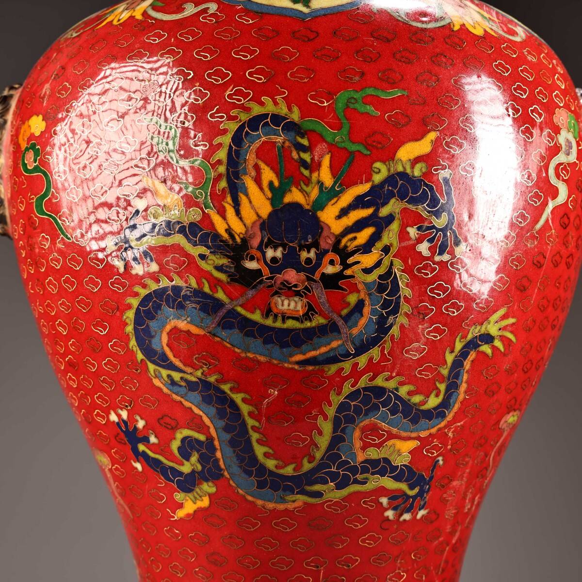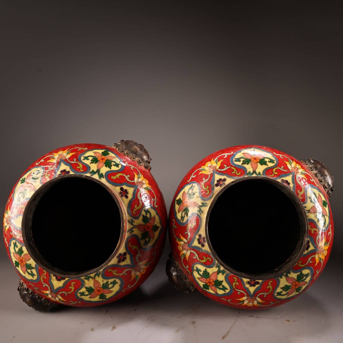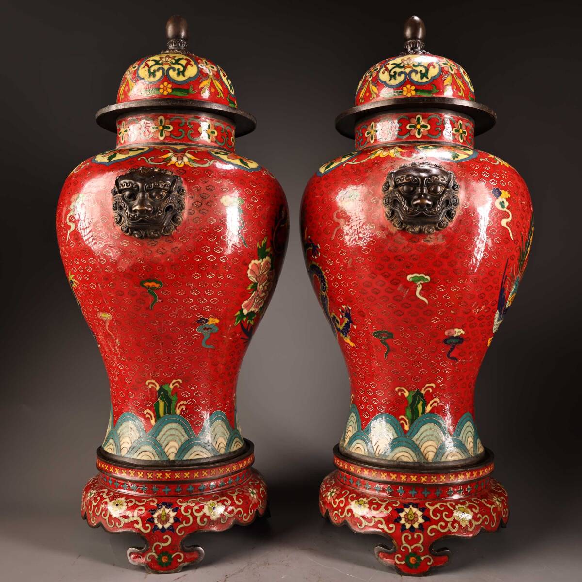 清代 旧家収蔵 銅製・純銅刻景泰藍撚糸エナメル彩将軍缶・文案置物 極細工 置物 東洋彫刻・骨董品・古賞物・中国古玩・中国古美術wn10.13 收藏