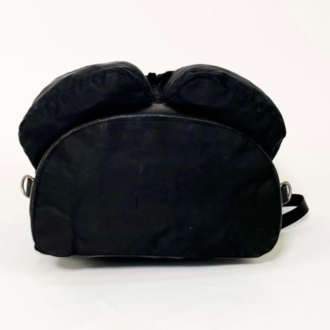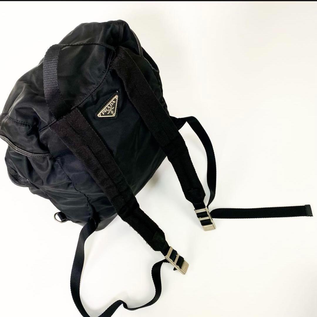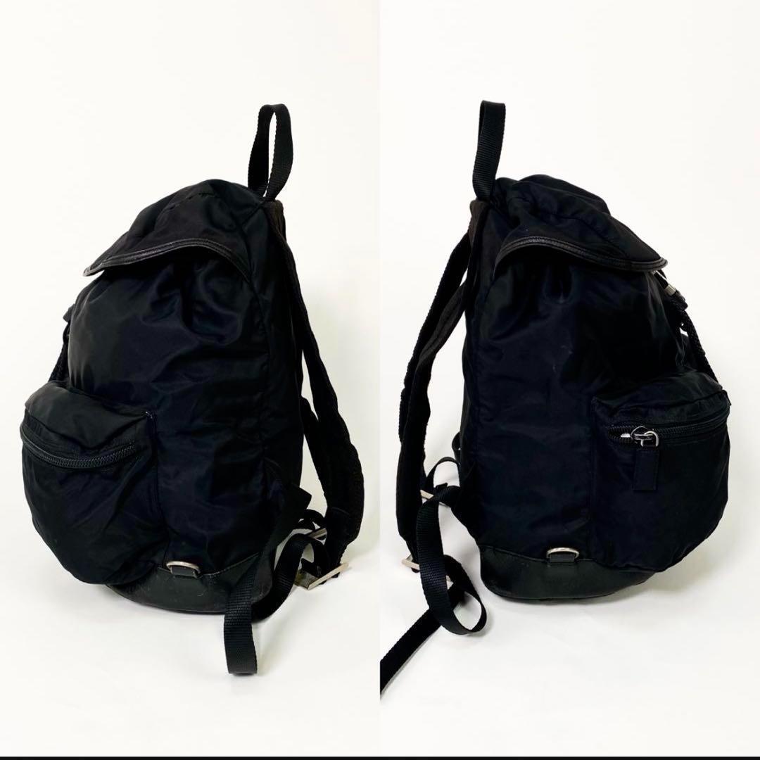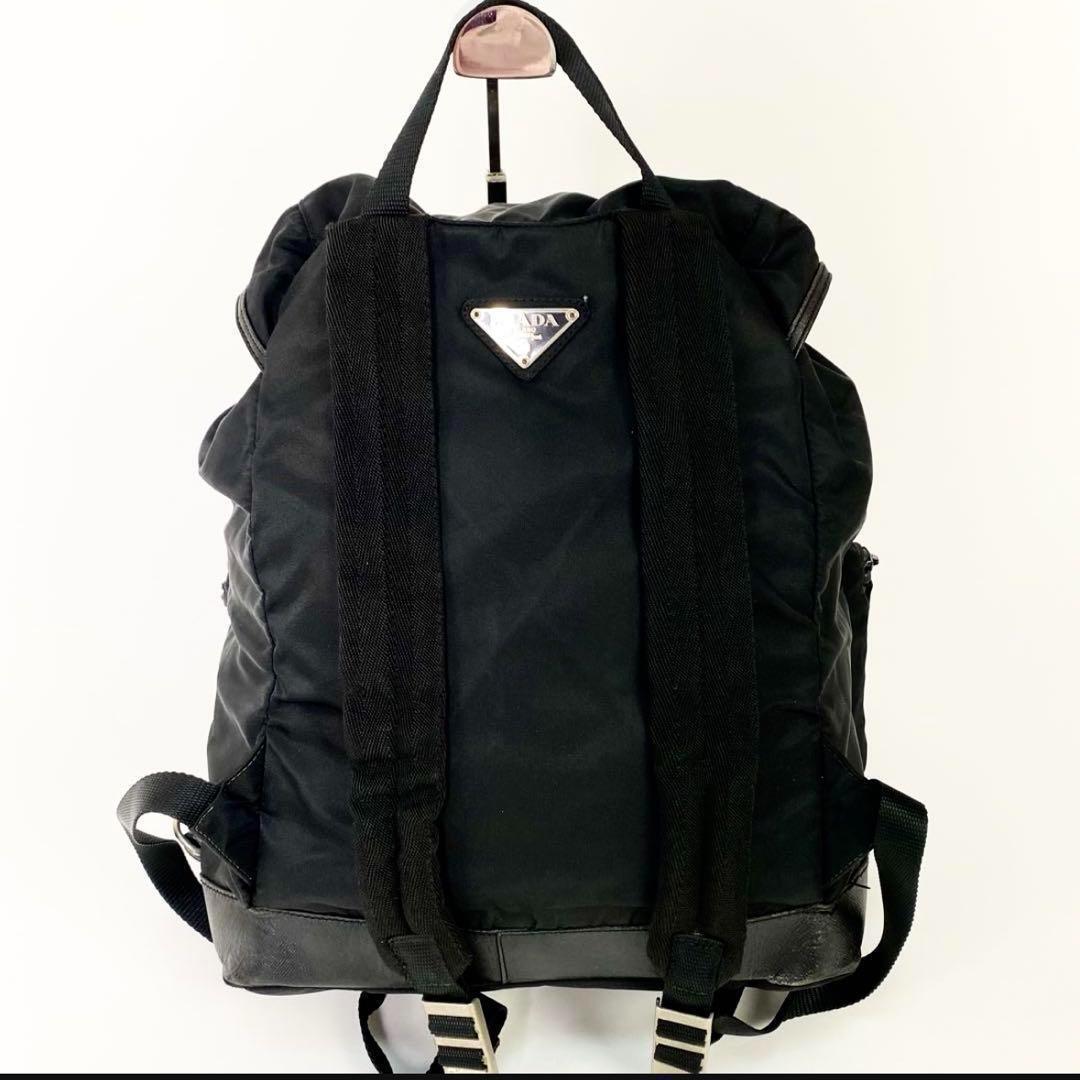 【正規品】PRADA プラダ バックパック リュックサック バッグ カバン 三角ロゴ ナイロン レザー ブラック ダブルポケット 白タグ 正規品 A4 收藏