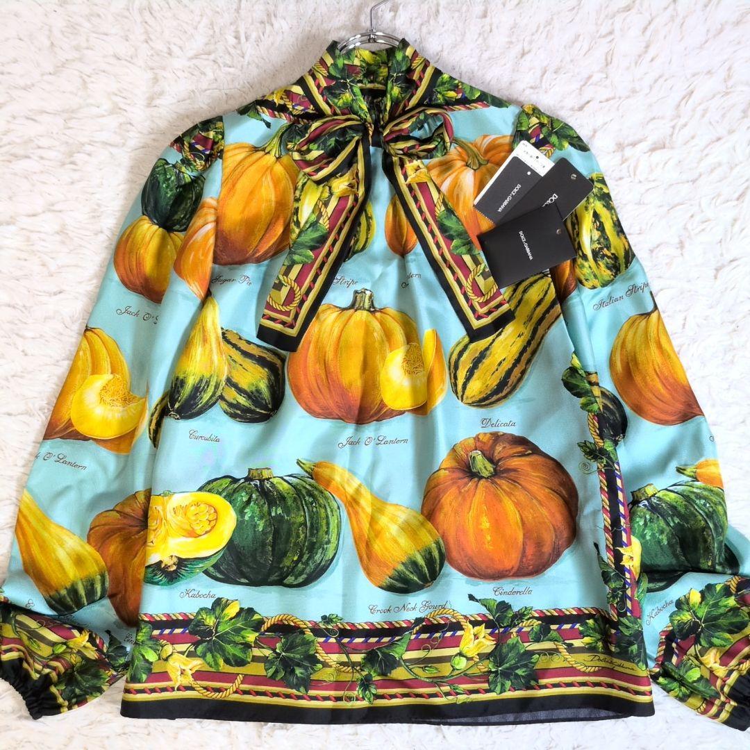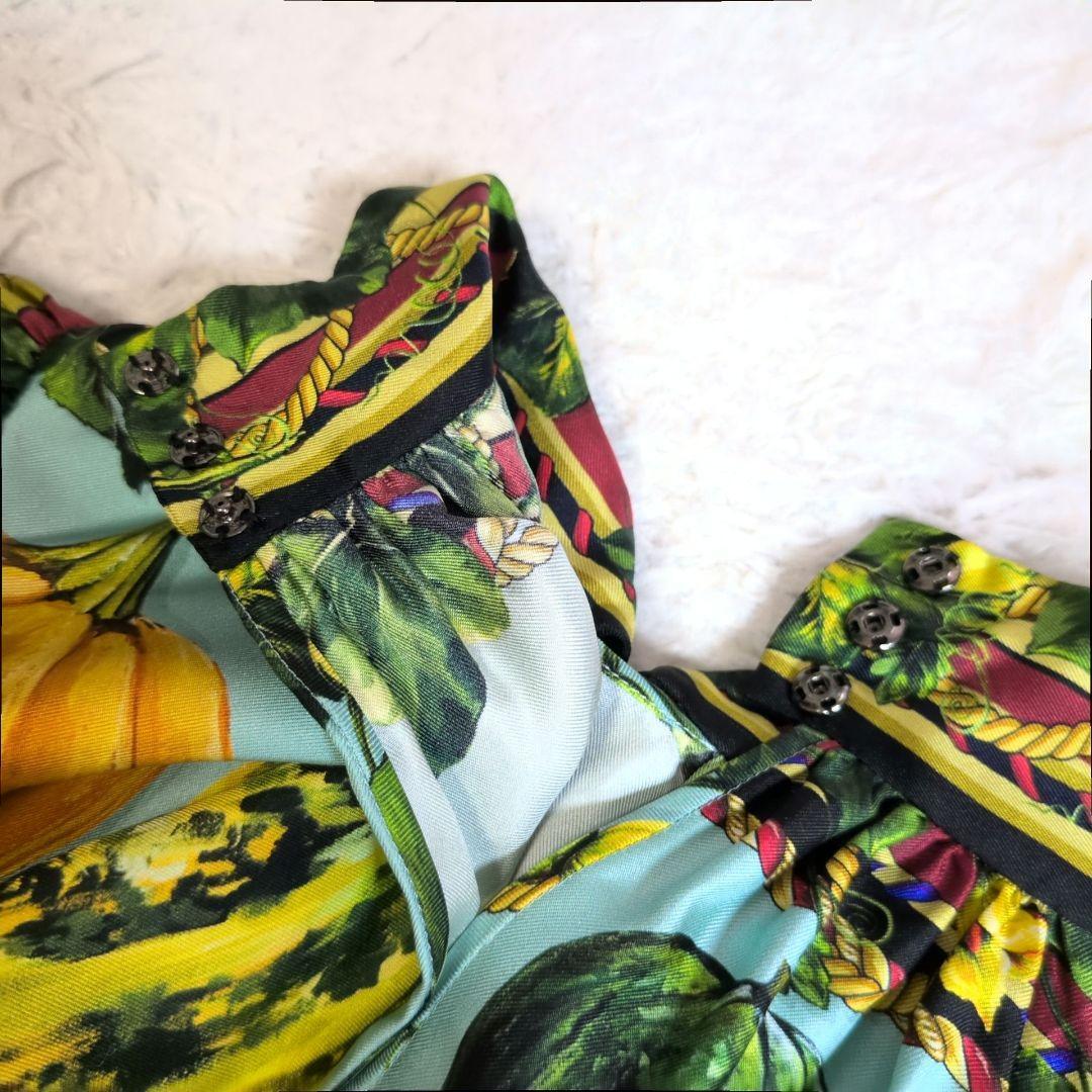 【未使用級/激レア!】DOLCE&GABBANA ドルチェアンドガッバーナ ベジタブルプリント ボウタイブラウス シルク100% フルーツ 総柄 36 收藏