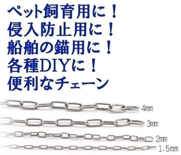 | ステンレスチェーン 鎖 雑用チェーン ペット 飼育 DIY 侵入防止 固定 くさり ステンレススチール SUS304 錆びにくい 18-8ステンレス | |||