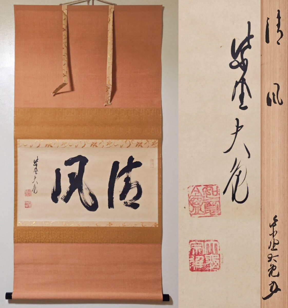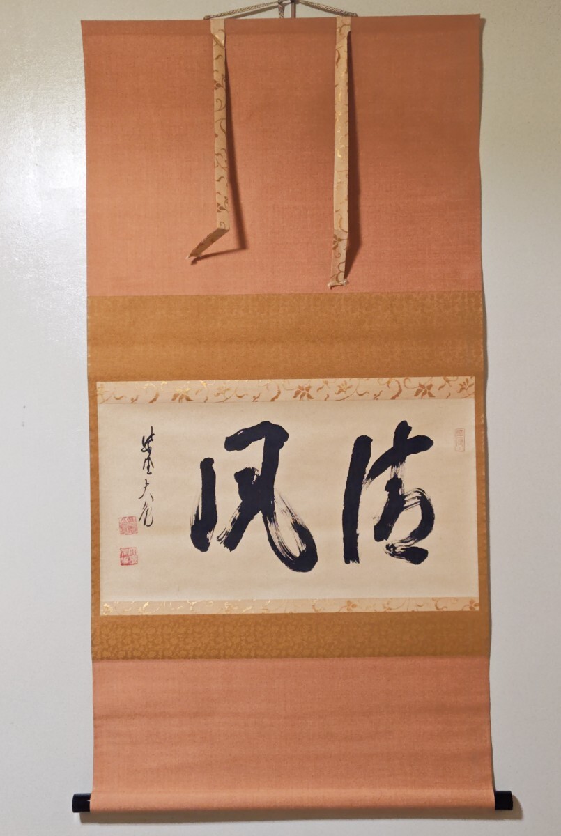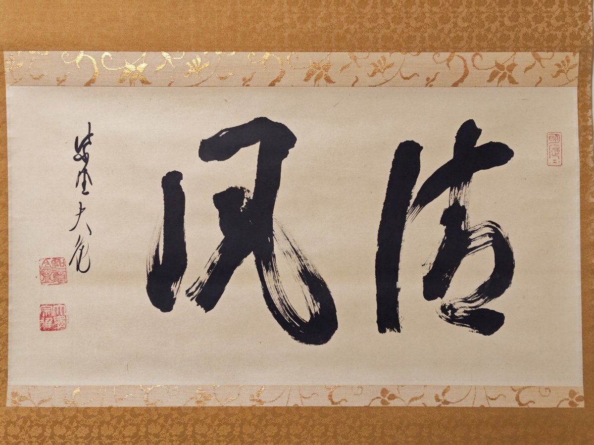 ≪茶掛≫ 大徳寺 【立花大亀】 自筆二字書 『清風』 紙本 横物 桐共箱 真作保証 花園大学学長 掛軸 收藏