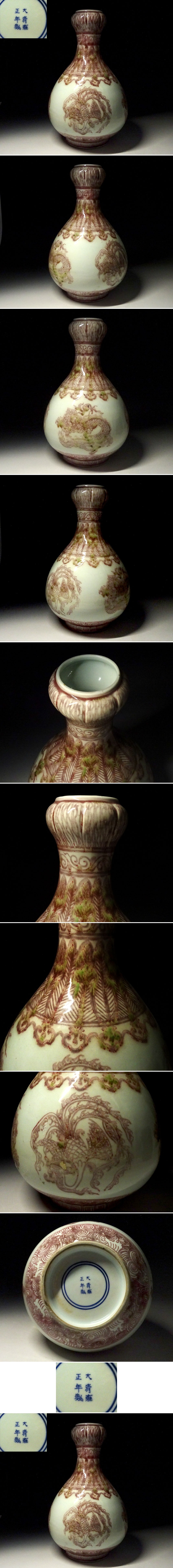緑屋c■ 中国古玩 釉裏紅 花瓶 大清雍正年製 唐物 時代物 i9/10-6288/14-3#100 收藏