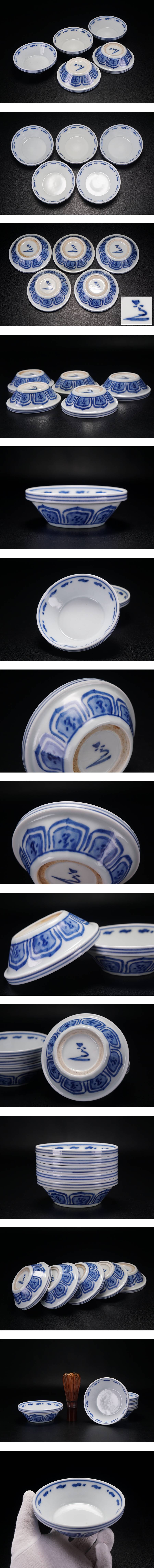 1円スタート◆京焼 陶工 四代 清水六兵衛 造 染付 蓮弁紋 煎茶碗 小皿 5客 在銘◆美品 煎茶道具 名工 骨董品 古美術 旧家蔵出し NS1624 收藏