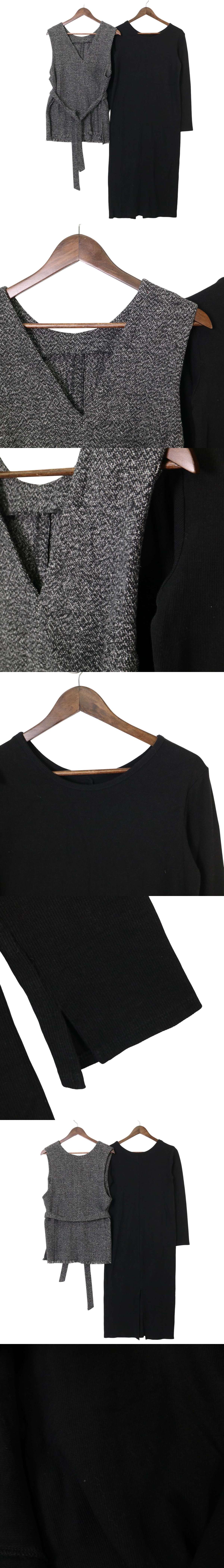 2枚セット★ mystic ミスティック 秋冬 フリンジベスト★ 長袖 ワンピース Sz.F レディース 黒 收藏