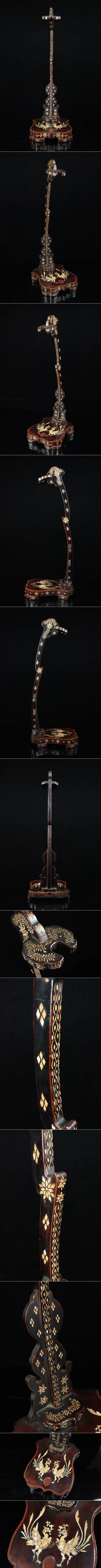 【ASAHI】江戸時代 総螺鈿鳳凰図 精巧な青貝細工! 御太刀掛 刀掛 高さ66cm 太刀飾り 細密細工 大名家伝来品[711162wp] 收藏