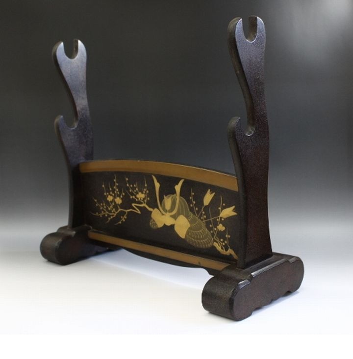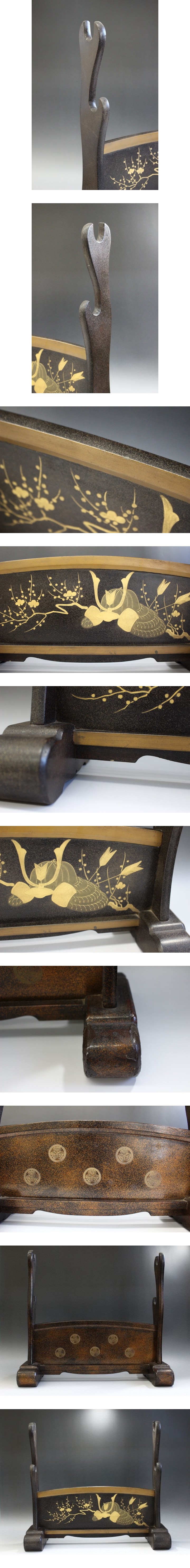 f548 技巧名品 時代 蒔絵 梨地 漆 兜文 二振 刀掛 刀掛台 刀台 日本刀 太刀 刀剣 居合刀 武具 收藏