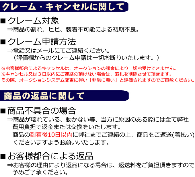 | A.商品梱包の際、納品書は必ず同封させていただきますが、 領収書もご希望の場合、同封させていただきます。一言お書き添えください。 |