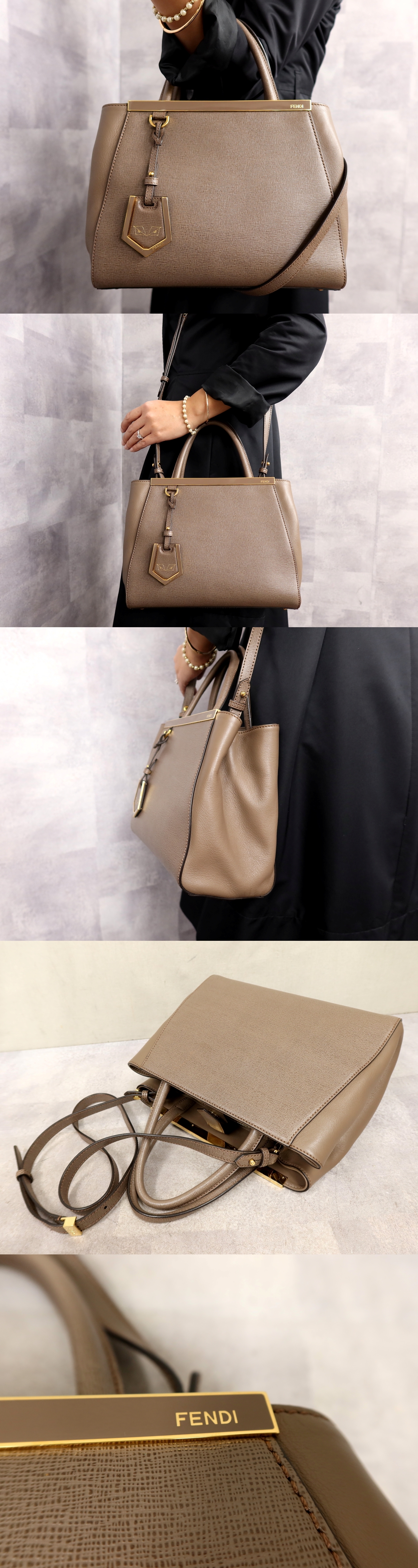 超美品●FENDI フェンディ●2JOURS トゥージュール●カーフ レザー 本革●2way ハンド バッグ●ブラウン系●ゴールド金具●腕掛け●Js62948 收藏