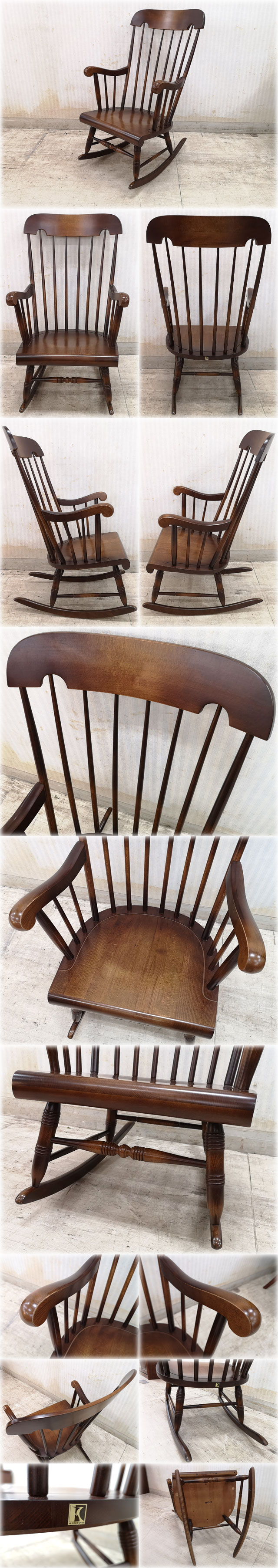 飛騨産業 ロッキングチェア 穂高 K色 アンティーク仕上 610x705x1010mm キツツキマーク 【長野発】 收藏