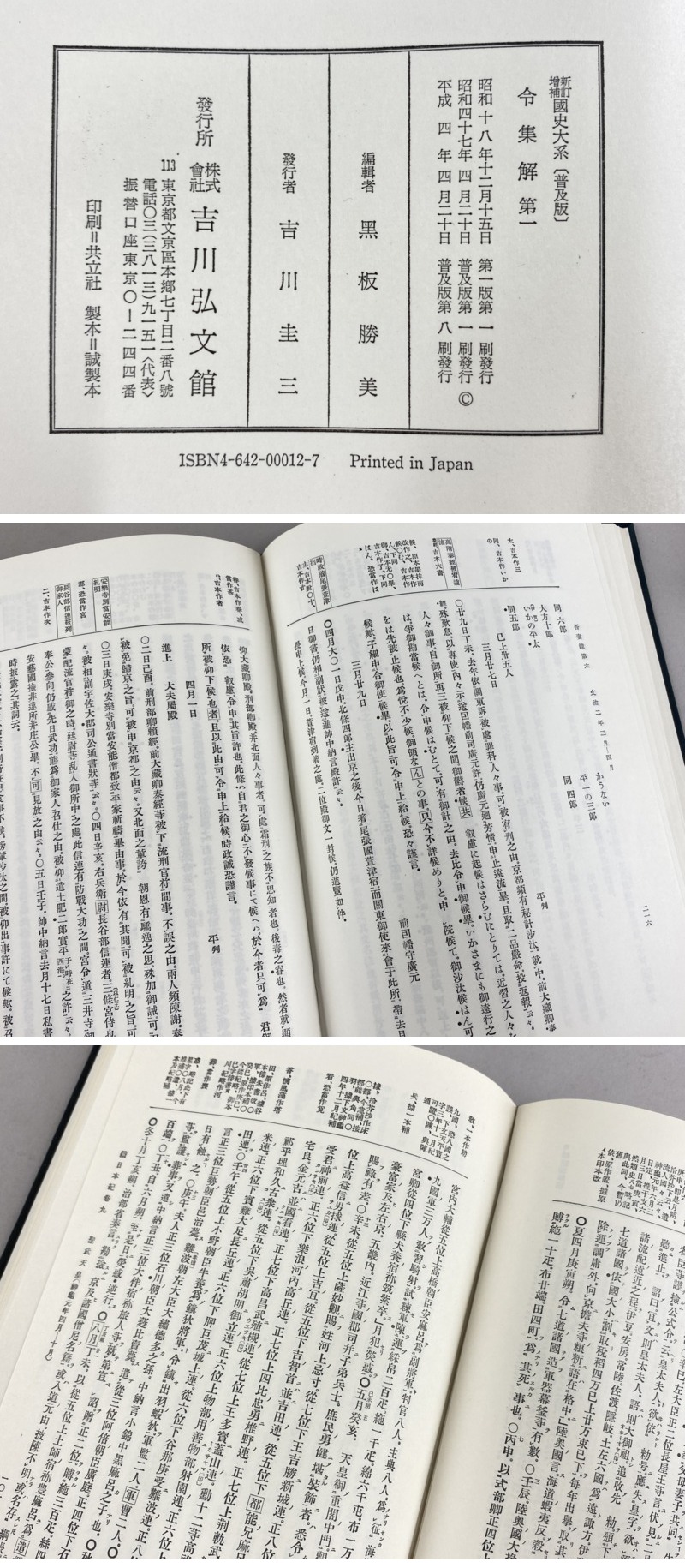 | ◇商品情報◇ | 当店の商品をご覧いただきありがとうございます!! 普及版 新訂増補 國史大系 吉川弘文館 まとめて 21冊セット 吾妻鏡 續日本紀 延喜式 他 になります。 経年保管品のため、擦れや薄汚れがございます。 まとめて品のため簡単な目視確認となり個々の細かなチェックはしていないため、書き込みや線引きがなどがある場合もございますので予めご了承くださいませ。 状態などは画像を参考の上、ご検討をよろしくお願い致します。 ※目視チェックをしていますが、表記漏れや見落としや細かな擦れ・薄汚れなどがある場合もございますので予め画像をご確認の上でご入札をお願いいたします。 商品のトップ画像端に写っている茶筅はサイズ比較用の備品ですので付属はしません | ||||||||||||||||||||||||||||||