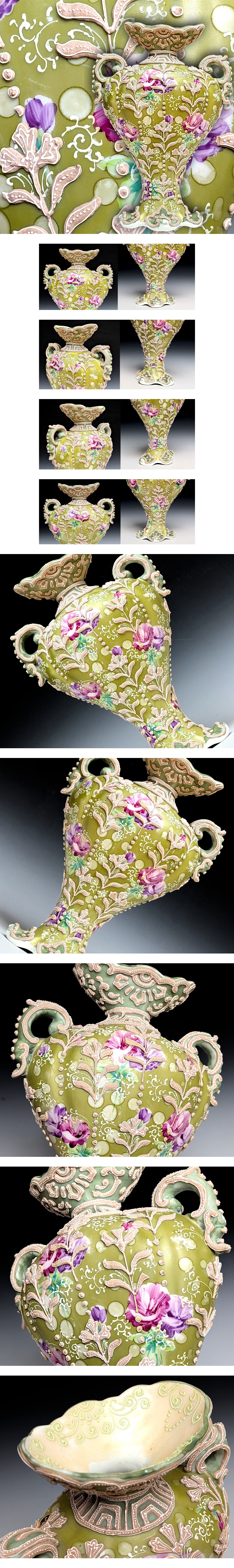 オールドニッポン 一陳盛上 花図紋 花瓶【2】 アンティーク ビンテージ 里帰り 明治 #650-10 收藏