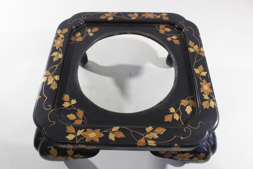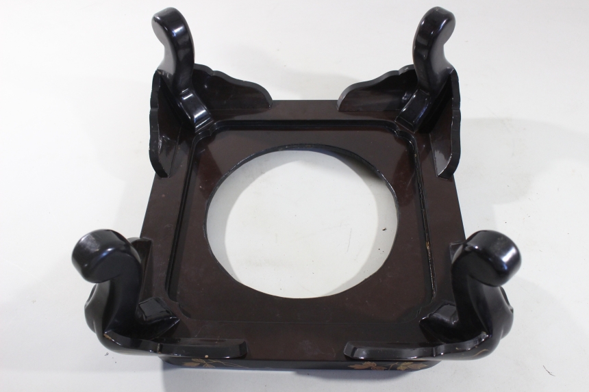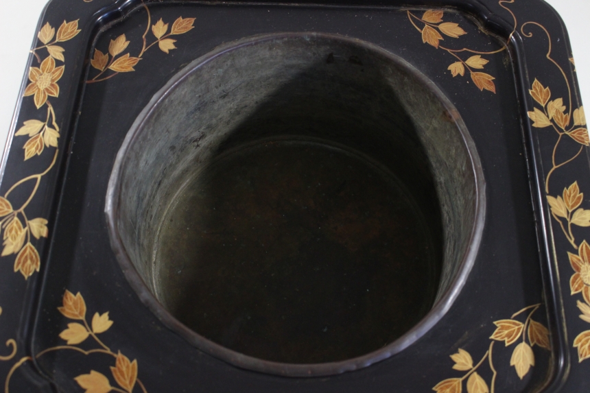 大名火鉢 江戸 木、銅、黒漆、金梨地塗蒔絵 45×45×23cm 6.7㎏ 猫脚/古道具/古民具 收藏