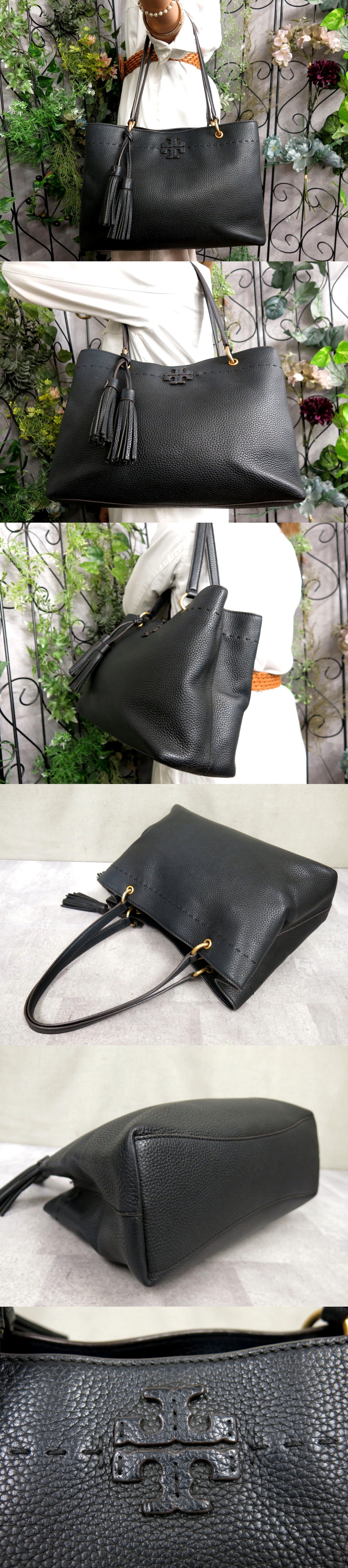 ●超美品●TORY BURCH トリーバーチ●マックグロー●タッセル●カーフ レザー 本革●トート バッグ●ダークネイビー●G金具●A4●Js56128 收藏