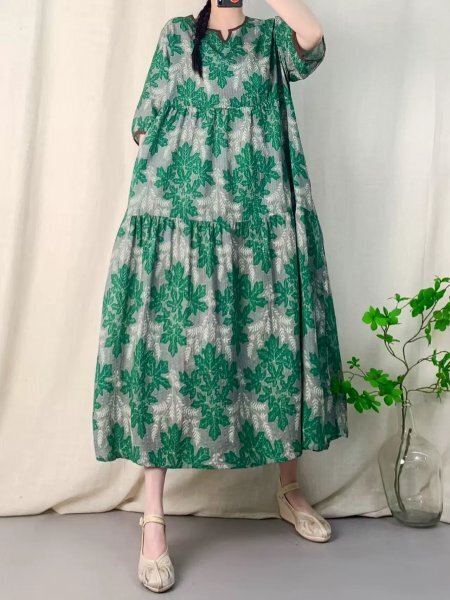 新品人気推薦ワンピース ゆったり 切り替え ふんわり アンティーク風 ロマンファッション 綿麻混 花柄 收藏