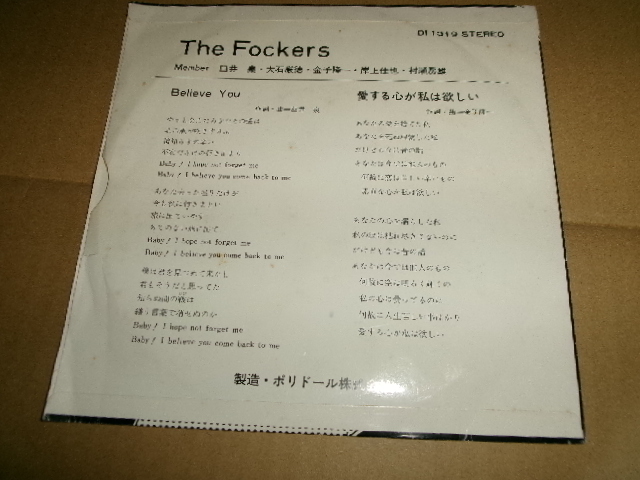 和モノ■昭和カルトGS■THE FOCKERS 7inch「BELIEVE YOU」自主盤 收藏