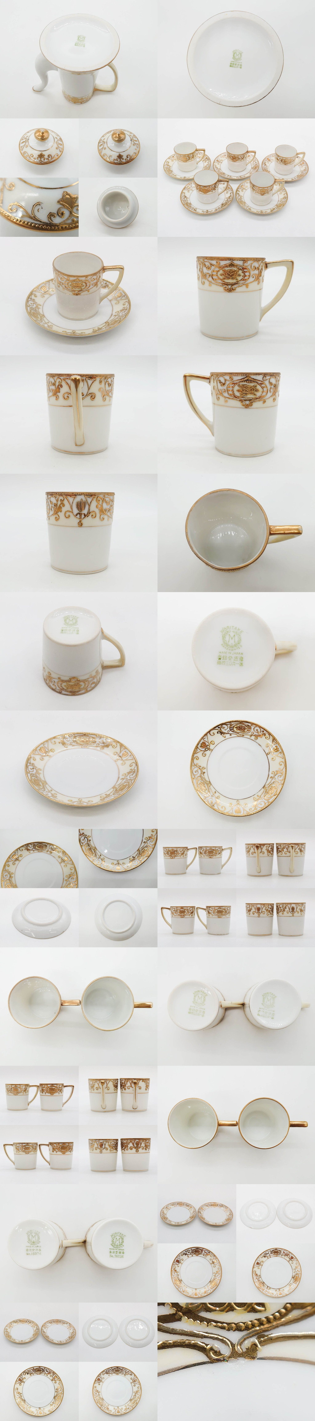 R-083293 大正~昭和初期 オールドノリタケ NORITAKE 意匠登録 ポット・カップ&ソーサー・ソルト&ペッパーシェーカー・プレート2枚セット 收藏