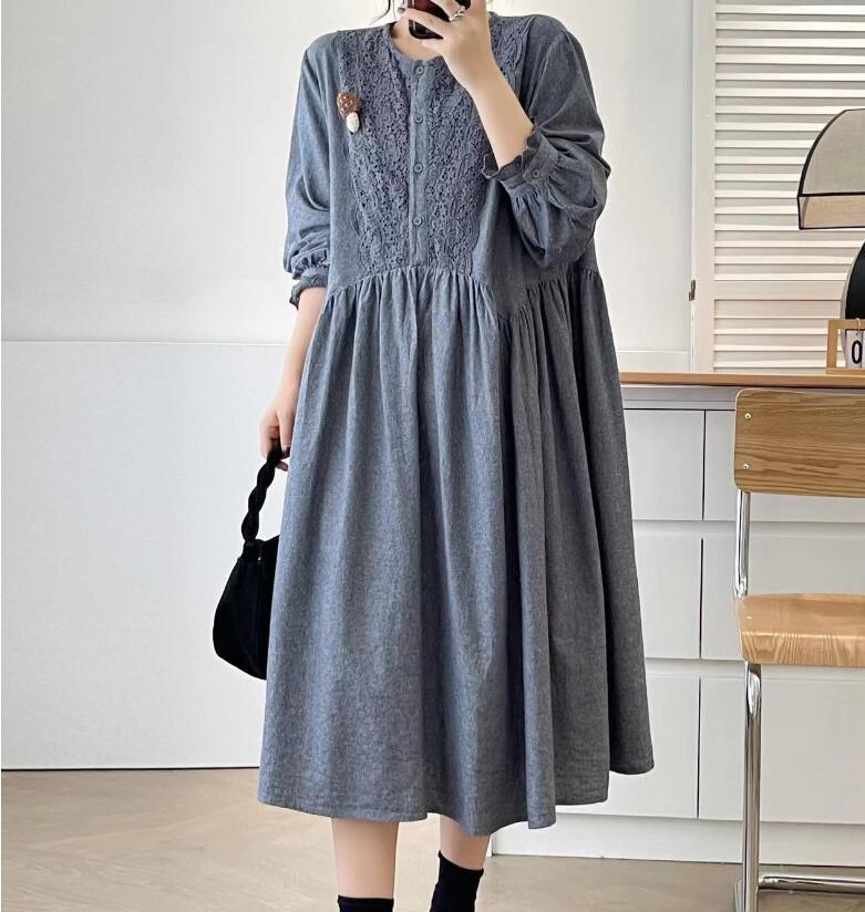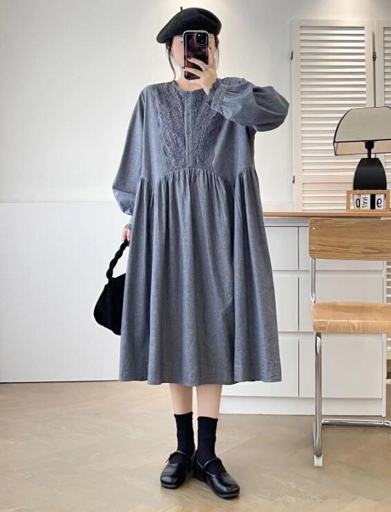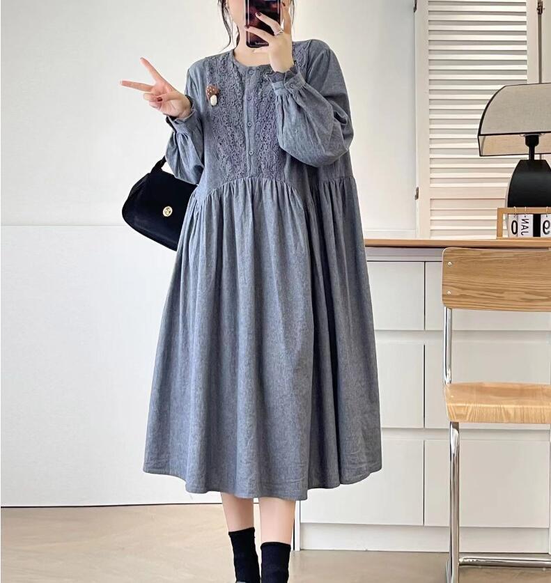 新入荷上質レース前身頃 ワンピース ゆったり 綿100% ふんわり オシャレ フリーサイズ ナチュラル グレー 收藏