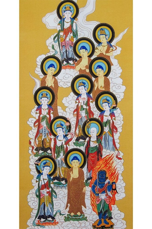 仏画掛け軸 日楠『十三仏』尺五立 直筆 書 南無阿弥陀仏 仏事法要掛軸 桐箱収納 天台宗 浄土宗 浄土真宗 禅宗に kt-004 收藏