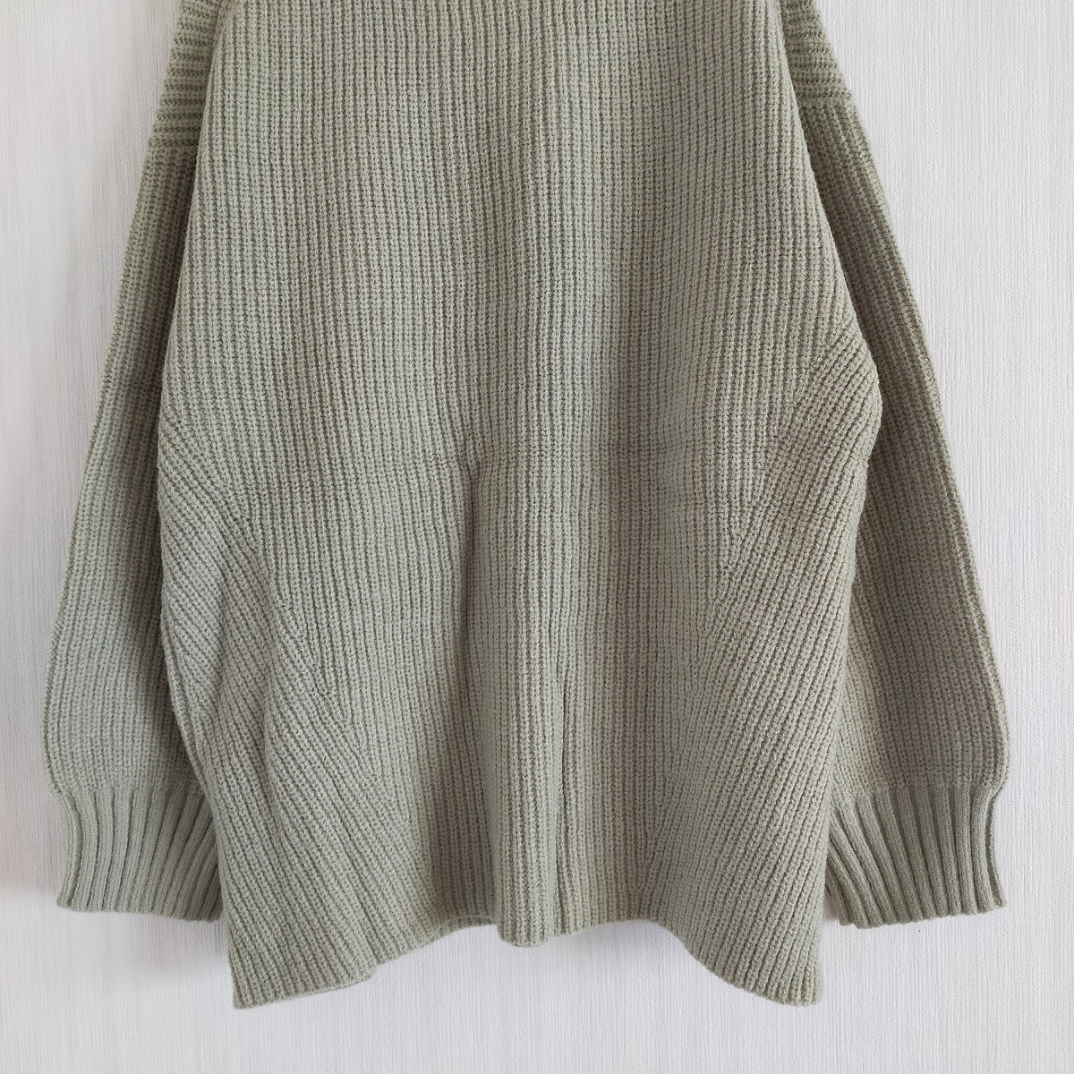 【仕様】:キーネックっぽいVネック、ドロップショルダー、サイドスリット入り、リブ袖・裾、柔らかい風合い