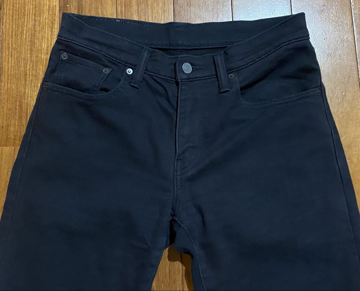 リーバイスのストレッチデニムパンツ、 00502-0428です。色はブラックです。USEDですが状態は良いです(10段階中8程度)。生地はストレッチ入りで綿70%、ポリエステル28%、ポリウレタン2%です。紙パッチ、ジッパーフライです。正規品です(中国製)。サイズはW29でウエストは重ねずに平置きで約79cm、ヒップ約99cm、股上約24cm、股下約74cm、股下15cmのふともも部分約51cm、裾まわり約40cm、重量約500gです。発送はゆうパケットポストになります。