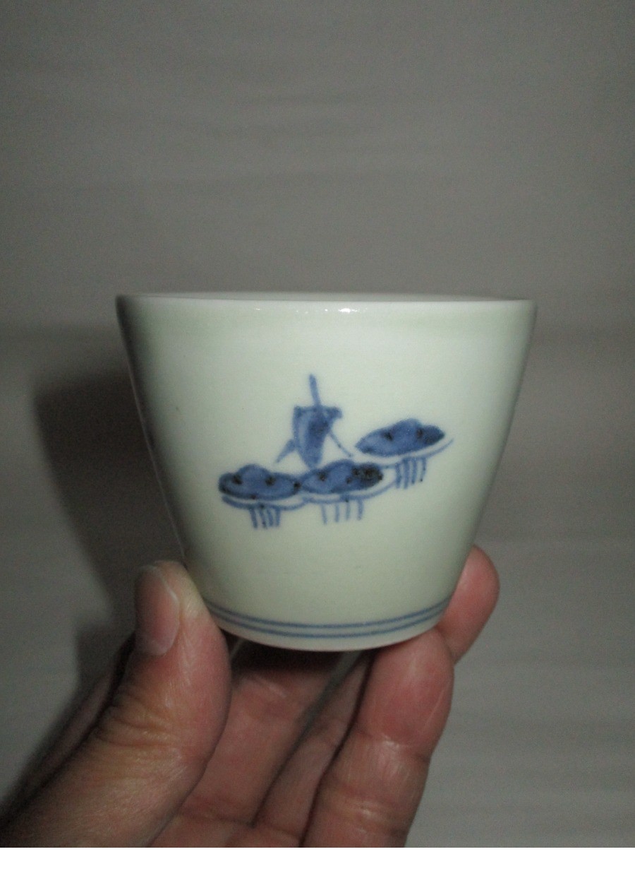 【江戸時代保証】古伊万里 染付 蕎麦猪口 1客 (高5.5㎝)『帆舟紋』 酒器・茶器・コレクションに ●無傷● 收藏