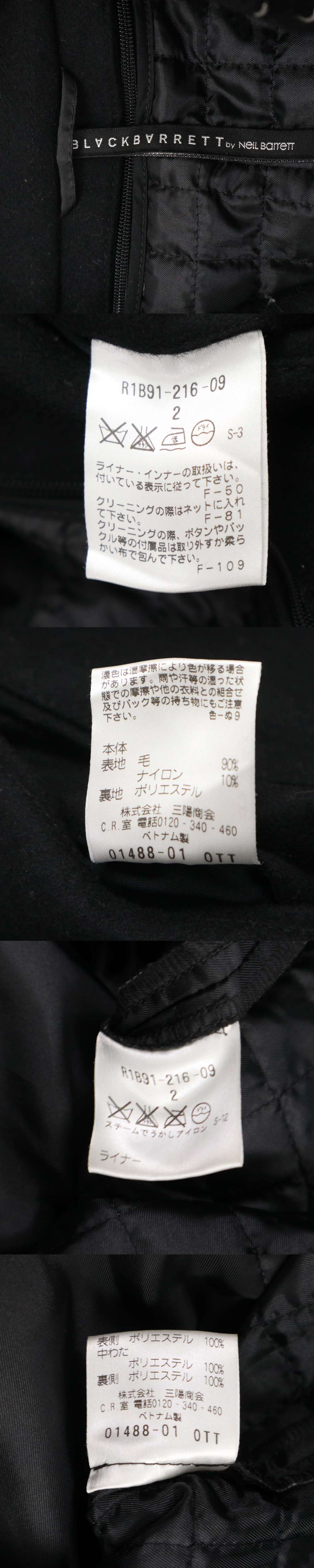 BLACK BARRETT ブラックバレット ニールバレット 秋冬★ 中綿 ライナー メルトン ウール トレンチ コート Sz.2 メンズ 黒 收藏