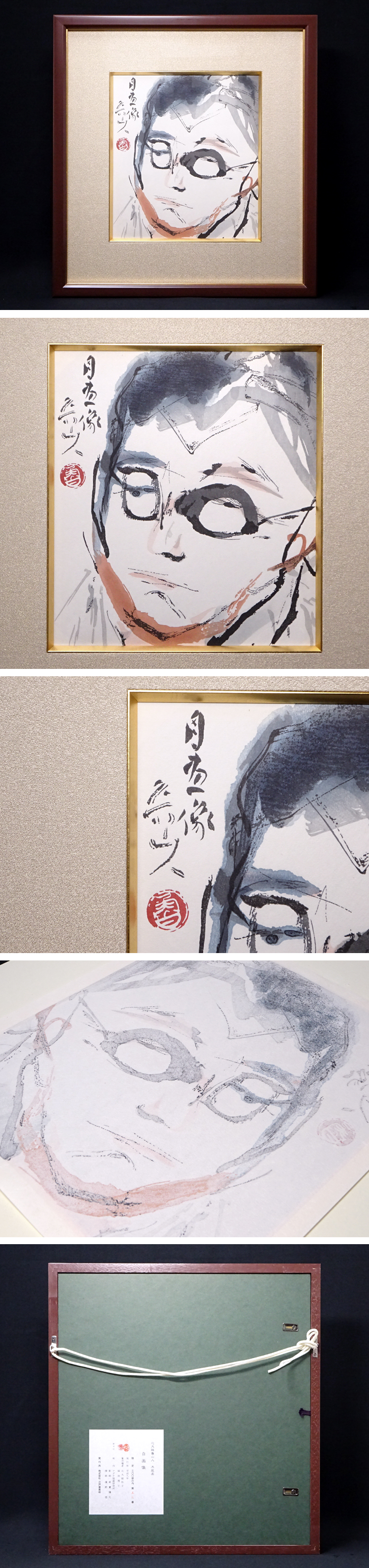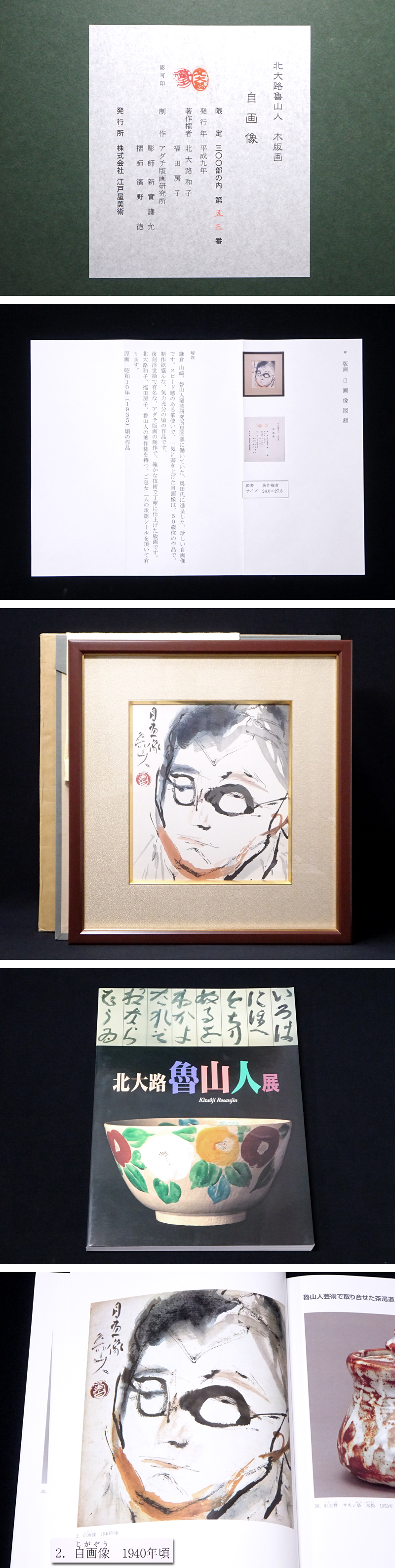 慶應◆作品集所載同手【北大路魯山人】限定木版画 自画像 額装 アダチ版画研究所制作 北大路和子、福田房子認定証明書 タトウ・図録付 收藏