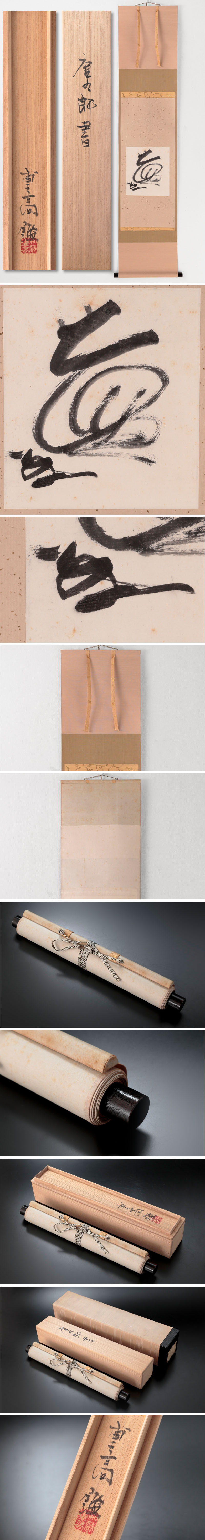 短く迷い無い筆使い、気迫溢れる作品です。 商品には全体的にシミが御座います。画像を確認されてからご参加お願いします。 ★商品は加藤唐九郎作、加藤重高識の作品である事を保証致します。 ※掛軸の同梱発送について※ 掛軸とお茶碗などの茶道具との同梱は、破損の危険性が非常に高いため、基本的に承っておりません。予めご了承下さいますようお願い申し上げます。掛軸同士やその他形状が近い商品に関しては同梱可能な場合もございますので、その際は当店よりお知らせ致します。 |