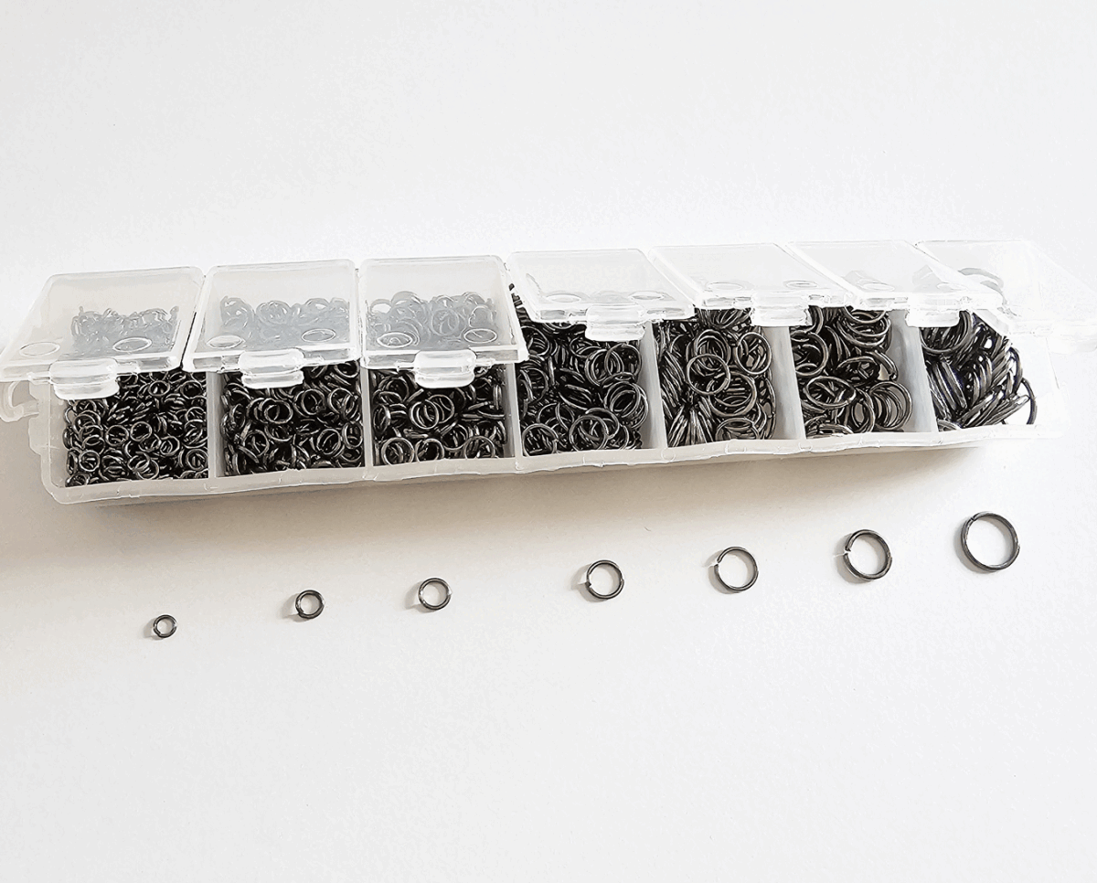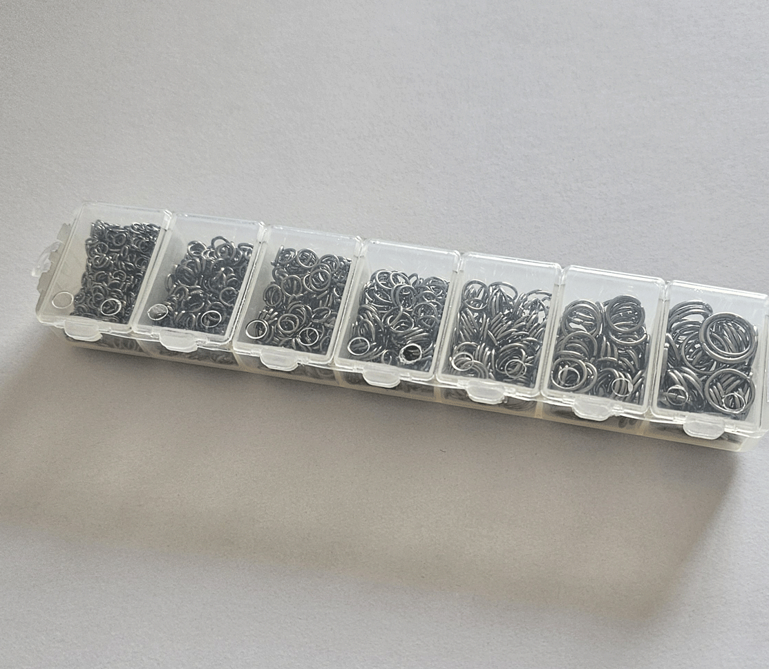 基礎金具:ボックス入りマルカン 〇丸カン〇7サイズミックス ケース入り 黒色/ガンメタ 1個 收藏