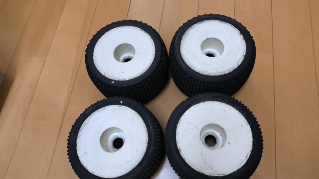 ぴかぴかホイルと新品タイヤで1回走行すればこの出品物のように傷は免れません。