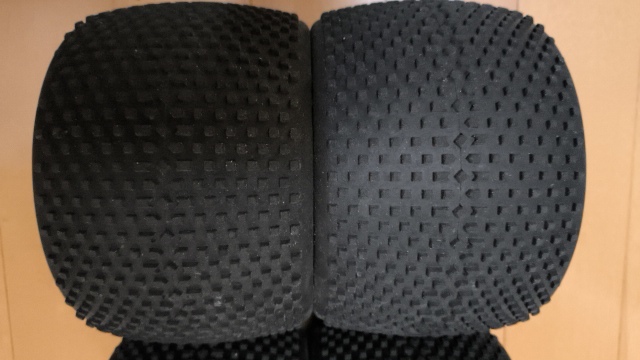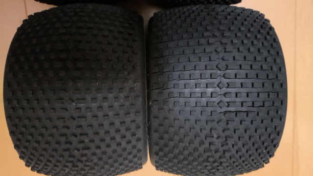 車もラジコンも同じことで扁平化するにつれてタイヤのたわみがなくなり転倒しにくくなります。