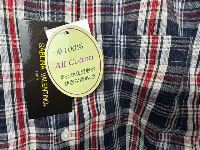【未使用新品/紙タグ付き】SV5977-1-12 Mサイズ SABLINA VALENTINO 先染めチェック長袖シャツ 綿100% 收藏