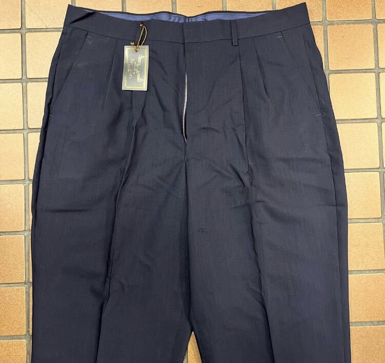 新品 特大★大特価 W100cm ネイビー系 ウール100% ゴルフパンツ カジュアルパンツ ゴルフウェア GOLF スラックス ツータック 日本製 軽量 收藏